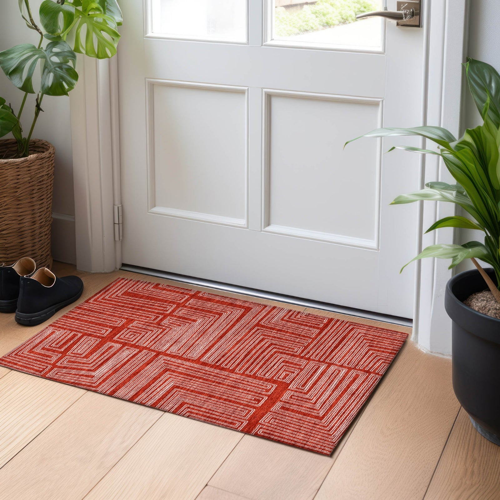Piper Looms Chantille Geometric ACN1045 Red Machine Washable Area Rug