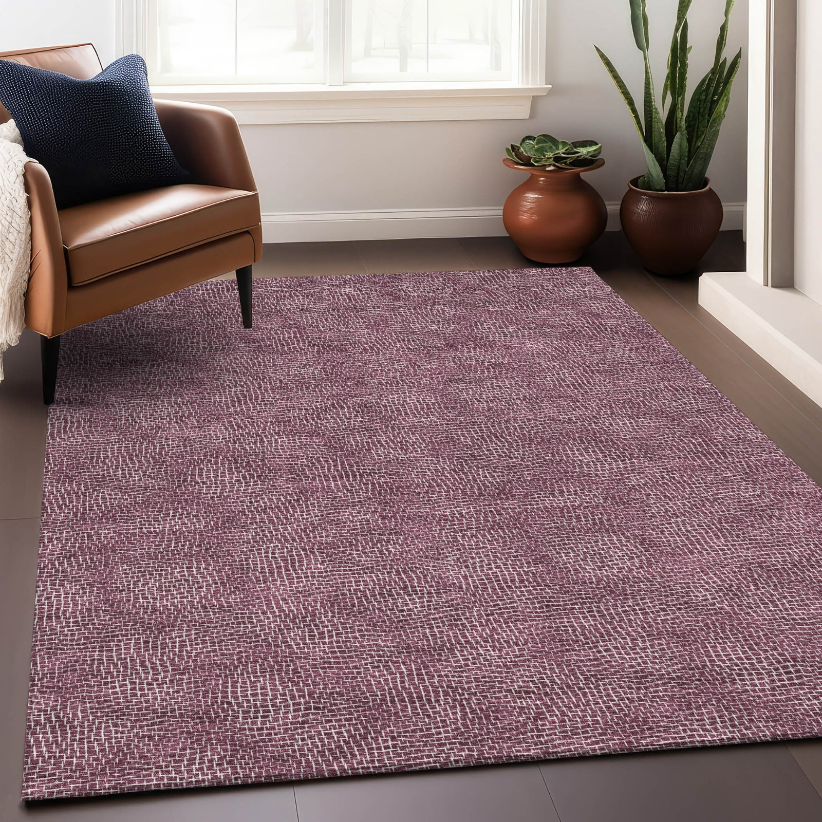 Piper Looms Chantille Geometric ACN1057 Eggplant Machine Washable Area Rug
