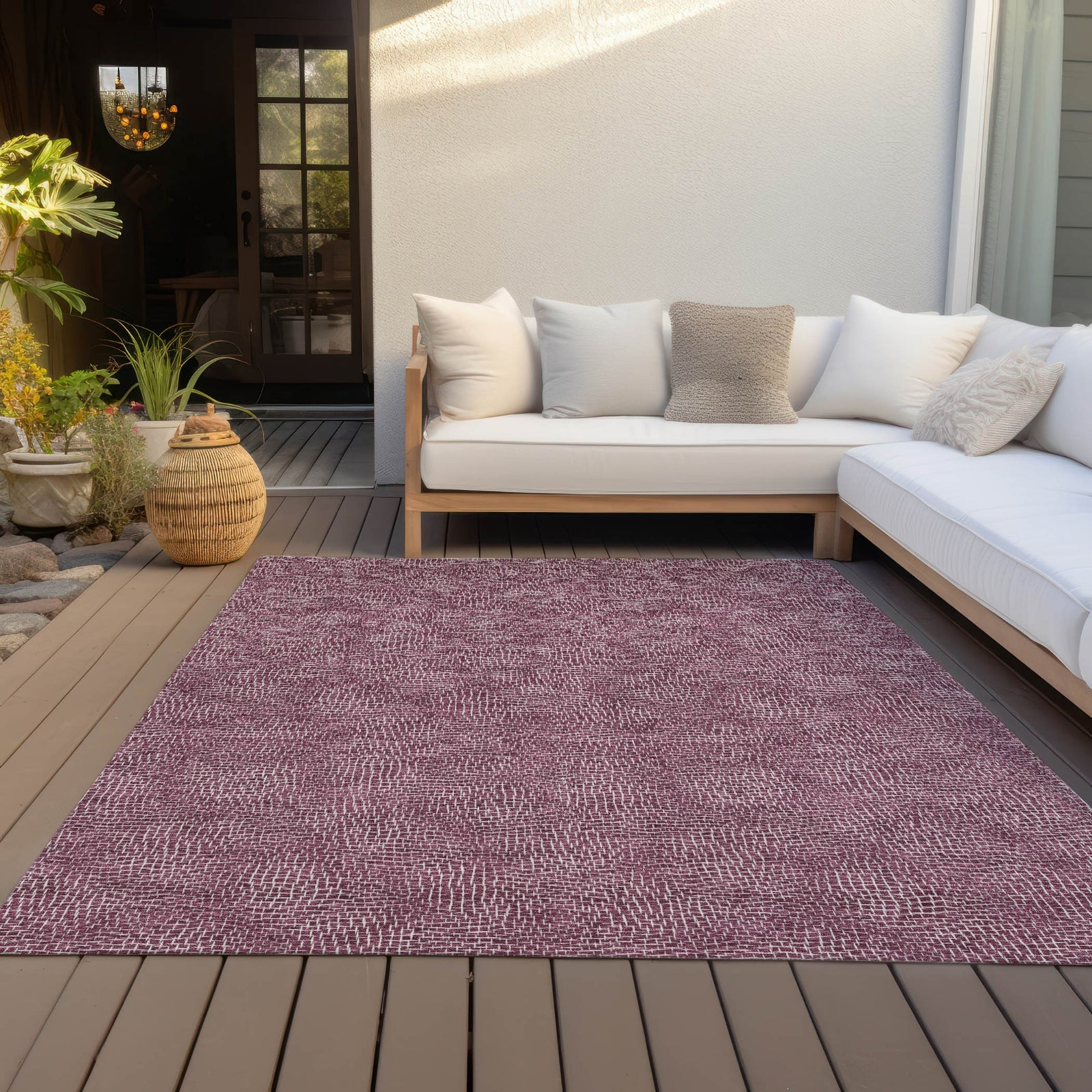 - UV Stabilized For Indoor or Outdoor Use. All rugs exposed to long periods of intense and direct sunlight can experience loss of color over time. Our rugs perform best in covered outdoor areas and uncovered areas with lower hours of direct sunlight.