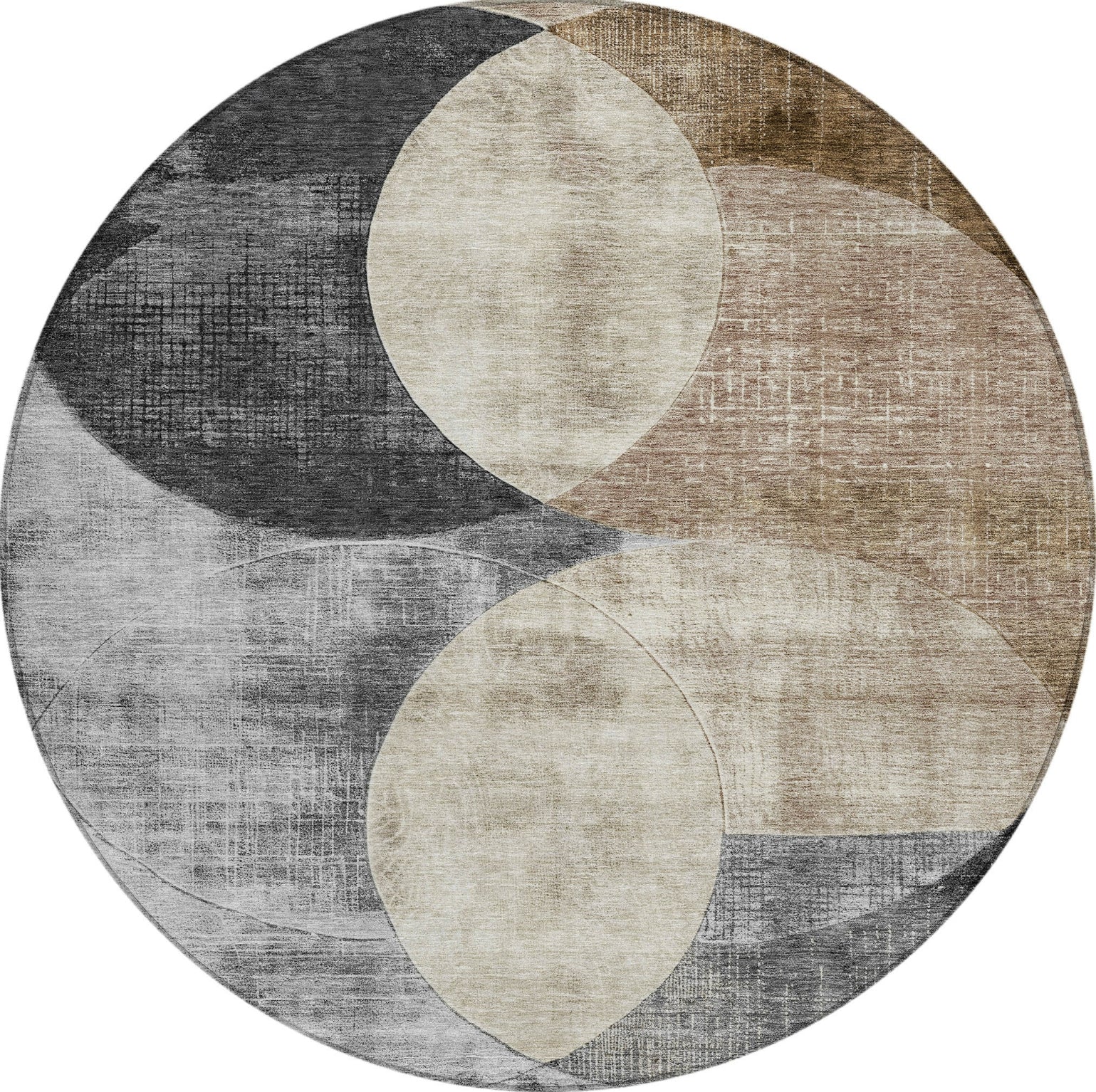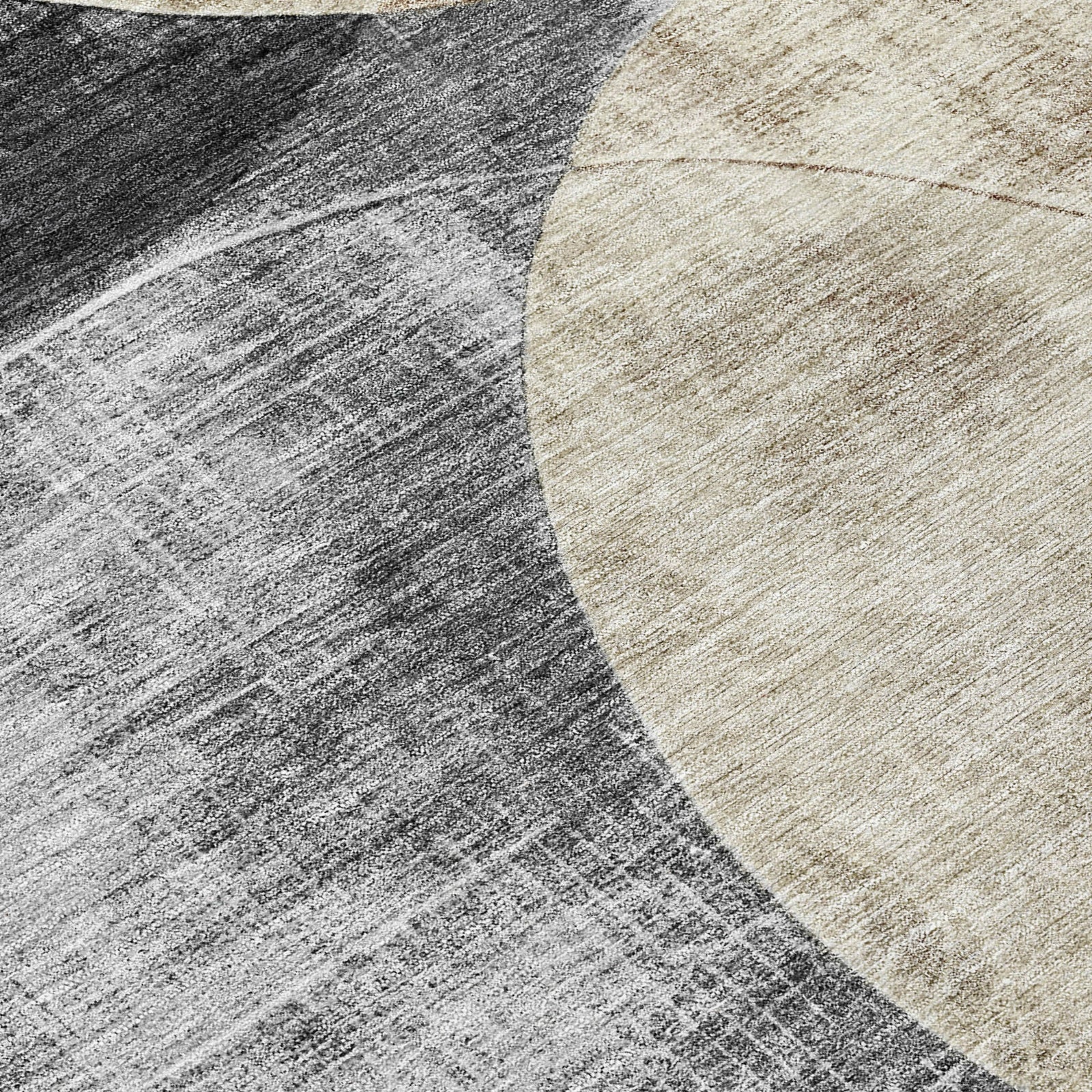 Immerse yourself in the dynamic design of our area rug, where large circles intertwine in a stunning display of transitional and geometric influences. Crafted with UV stabilized materials, this rug is perfect for both indoor and outdoor use, ensuring long-lasting durability and flexibility in any setting. Its ultra-thin construction adds a sleek, modern look to any room, while the machine-washable feature offers convenience for homes bustling with family activities and pets, combining effortless style with practicality.