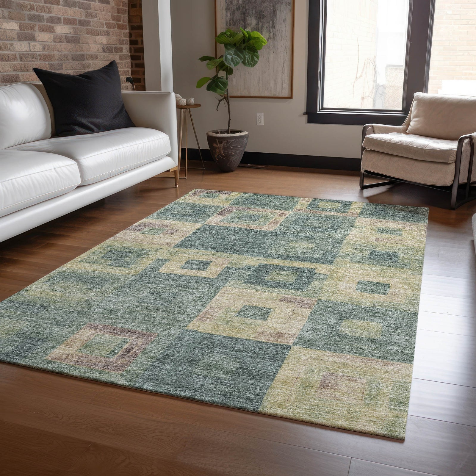 Piper Looms Chantille Geometric ACN1142 Sage Machine Washable Area Rug