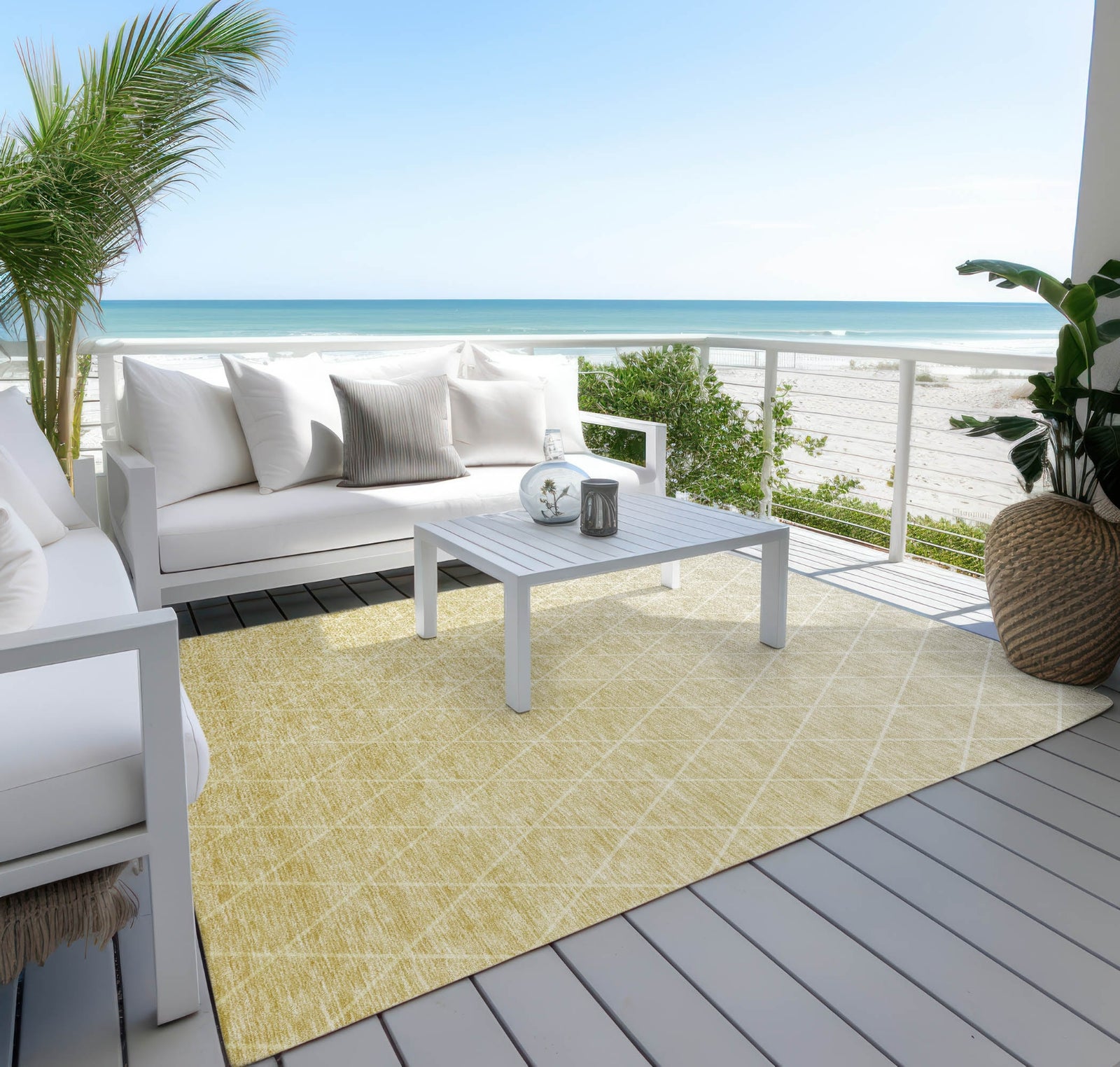 Introduce a stylish element to your home with our area rug, showcasing a lattice design with an ombre effect, perfect for transitional and geometric decor. This rug is UV stabilized for both indoor and outdoor use, and its ultra-thin construction ensures it fits seamlessly into any space. Plus, it's machine-washable, making it ideal for families and pet owners.