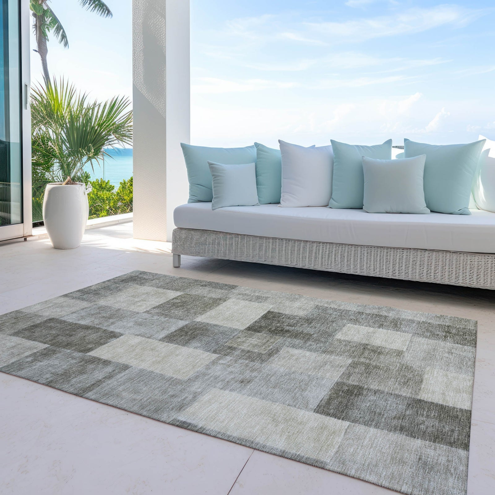 A stylish design of rectangles and squares makes this rug a perfect fit for transitional spaces. The geometric pattern elevates its style, making it a versatile addition to any room. UV-stabilized for both indoor and outdoor use, it is designed for durability. The ultra-thin construction allows for easy placement and maintenance, and it is machine-washable for effortless care. Family and pet friendly, this rug combines style and functionality seamlessly.