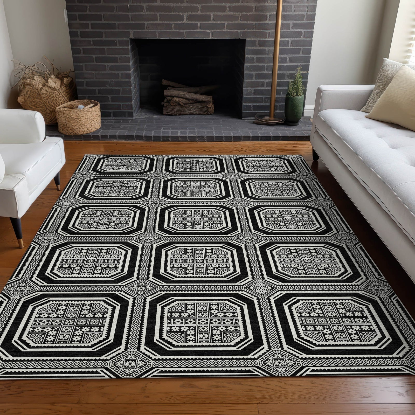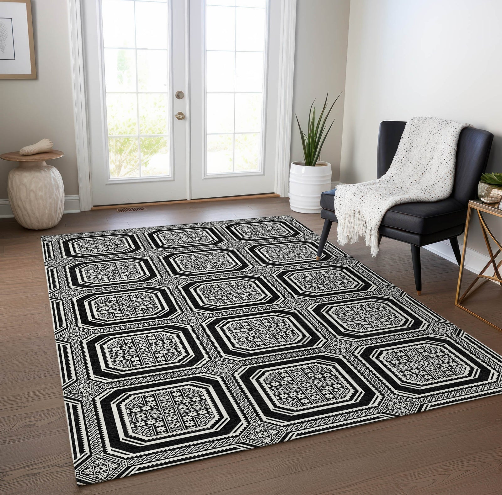 Piper Looms Chantille Geometric ACN1452 Black Machine Washable Area Rug
