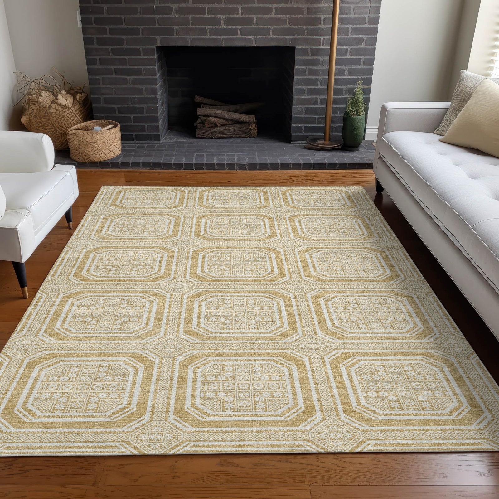 Piper Looms Chantille Geometric ACN1455 Gold Machine Washable Area Rug