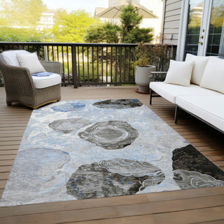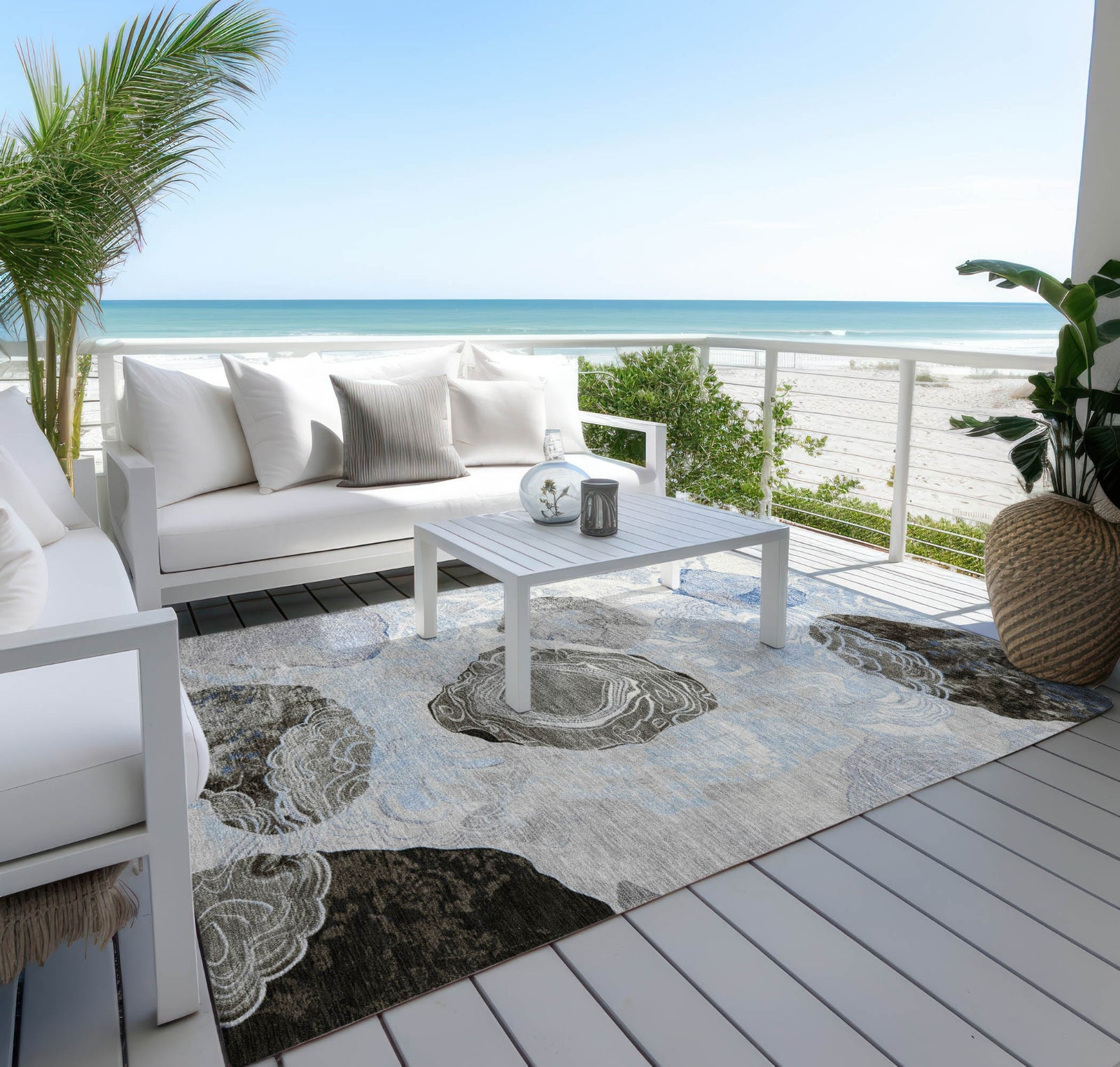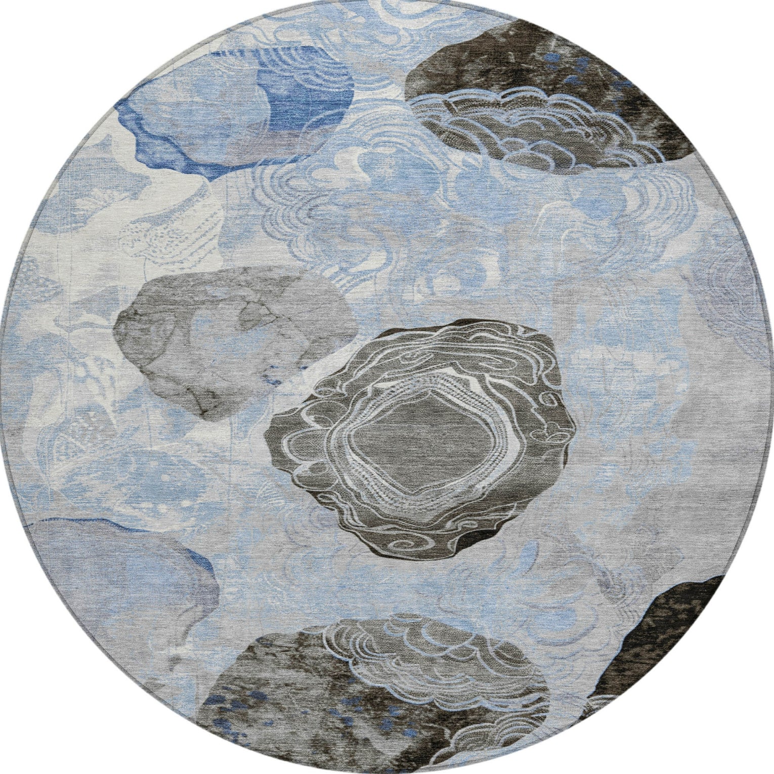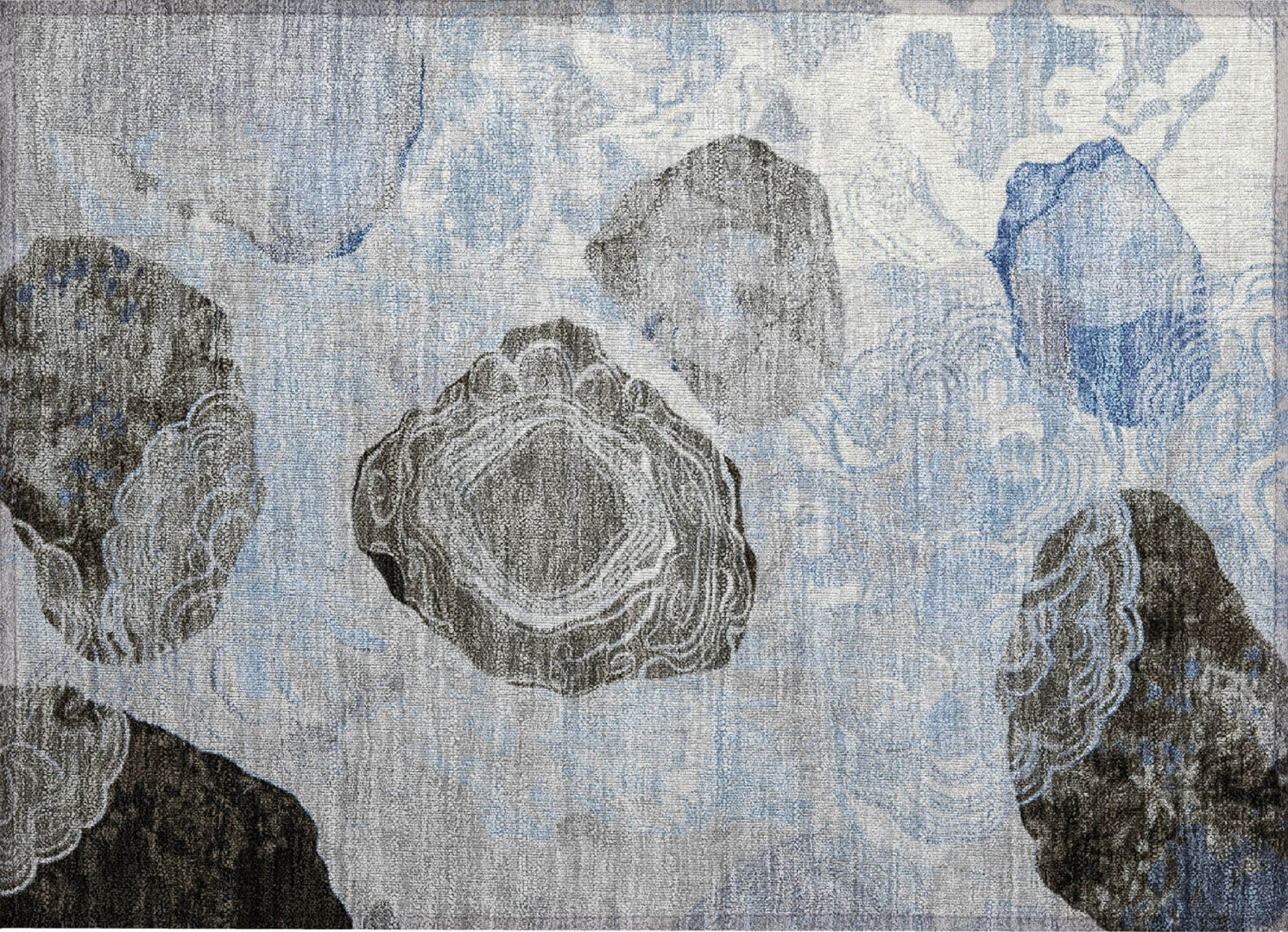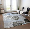 Featuring an elegant geometric pattern, this transitional rug displays stone-like motifs with delicate rings. The sophisticated blend of stone textures and fine ring details adds a modern touch to any decor. UV stabilized for lasting durability, this rug is suitable for indoor and outdoor settings, preserving its attractive design through varied use. Its ultra-thin profile ensures a smooth fit under furniture, and it's machine-washable for easy cleaning. Ideal for family and pet-friendly spaces, this rug merges stylish design with functional benefits.