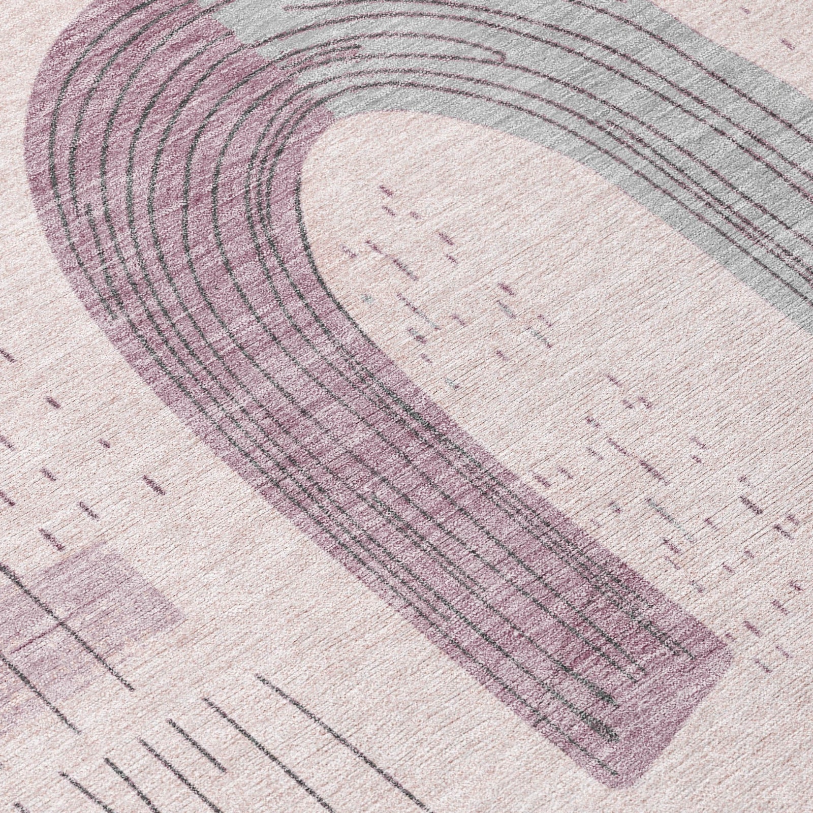 Featuring a geometric pattern with horse show shape motifs, stripes, and dots, this transitional rug offers a distinctive and stylish look. The blend of elements creates a versatile design that complements various interior themes. UV stabilized to maintain its color, this rug works well in both indoor and outdoor environments. Its ultra-thin construction fits neatly under furniture, and it is machine-washable for easy upkeep. Great for family and pet-friendly homes, this rug combines contemporary design with practical benefits.
