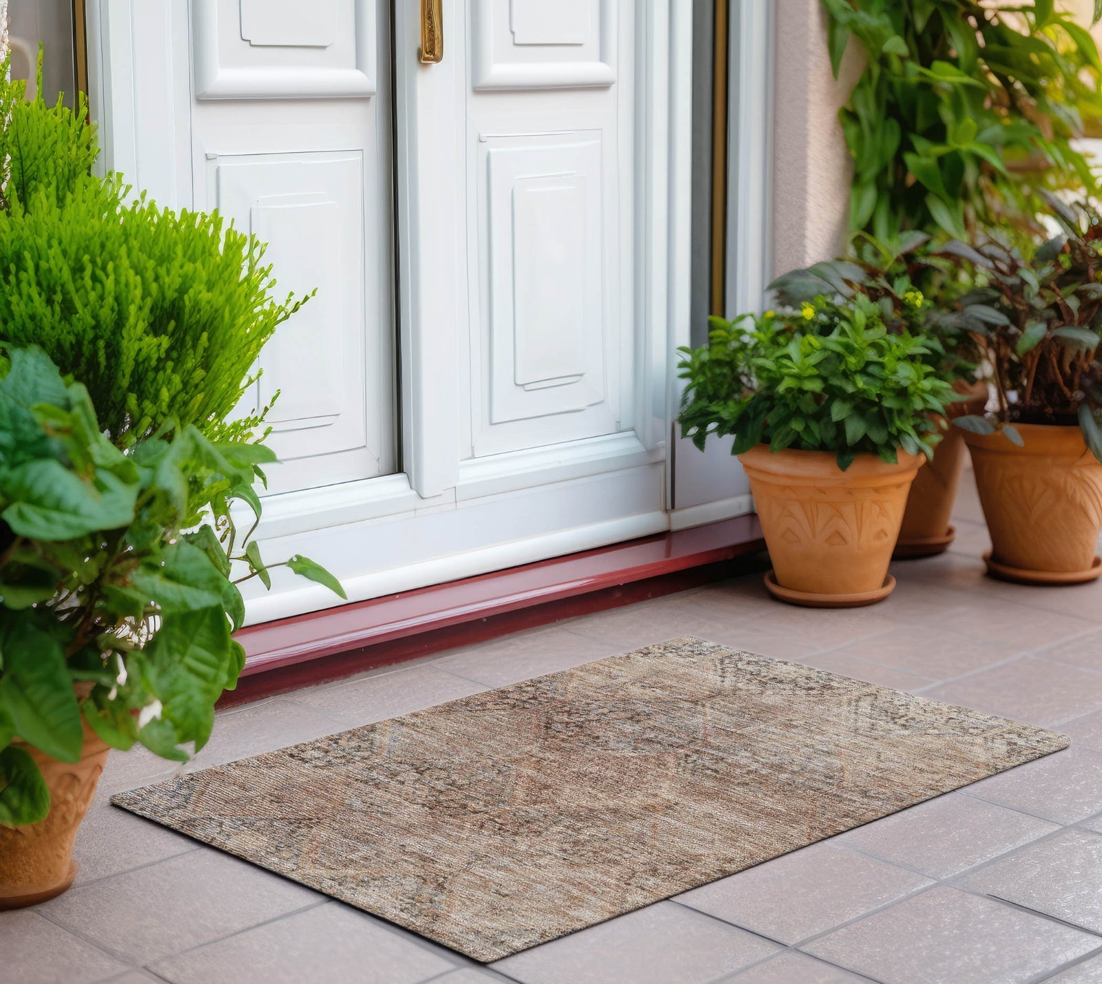 Featuring large diamond motifs with detailed accents, this rug brings a dynamic geometric pattern into your space. The bold shapes are softened by intricate designs, creating a look that's both modern and timeless. Its transitional style makes it an ideal choice for rooms that blend contemporary and traditional decor. This UV-stabilized rug is designed for both indoor and outdoor use, with an ultra-thin construction that makes it easy to manage and maintain. Machine-washable for convenience, it's also family and pet-friendly, ensuring it holds up to daily traffic and activity. Bring effortless style and durability to your space with this versatile rug.