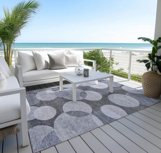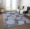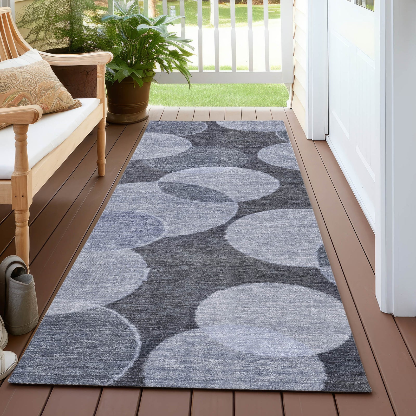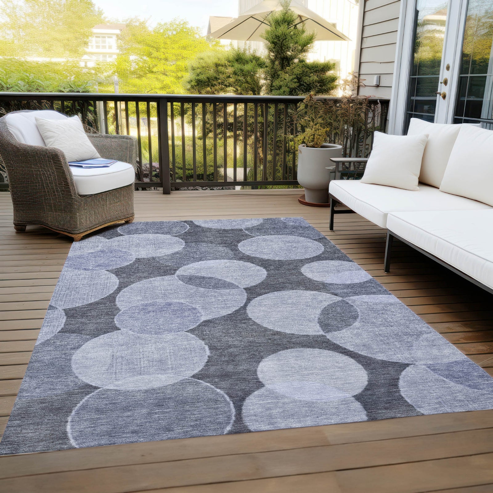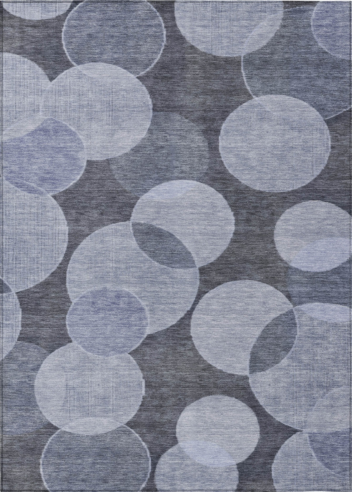 This rug features a dynamic design of circles overlaying smaller circles, offering a geometric pattern that feels both modern and timeless. The layered circles add texture and interest, while the transitional style ensures the rug enhances any decor, whether traditional or contemporary. This UV-stabilized rug is designed for both indoor and outdoor use, with an ultra-thin construction that makes it easy to manage and maintain. Machine-washable for convenience, it's also family and pet-friendly, ensuring it holds up to daily traffic and activity. Bring effortless style and durability to your space with this versatile rug.
