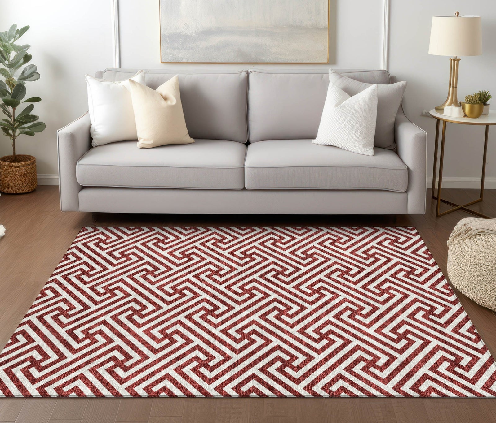 Piper Looms Chantille Geometric ACN731 Merlot Machine Washable Area Rug