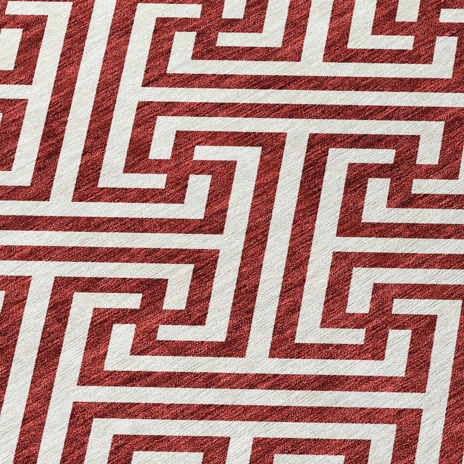 Our area rug showcases the simplicity and elegance of a large-scaled Greek key pattern, forming a striking transitional geometric pattern. Crafted for your lifestyle, it's UV stabilized for any setting, ultra-thin for easy integration, machine-washable for straightforward upkeep, and ideal for households with kids and pets.
