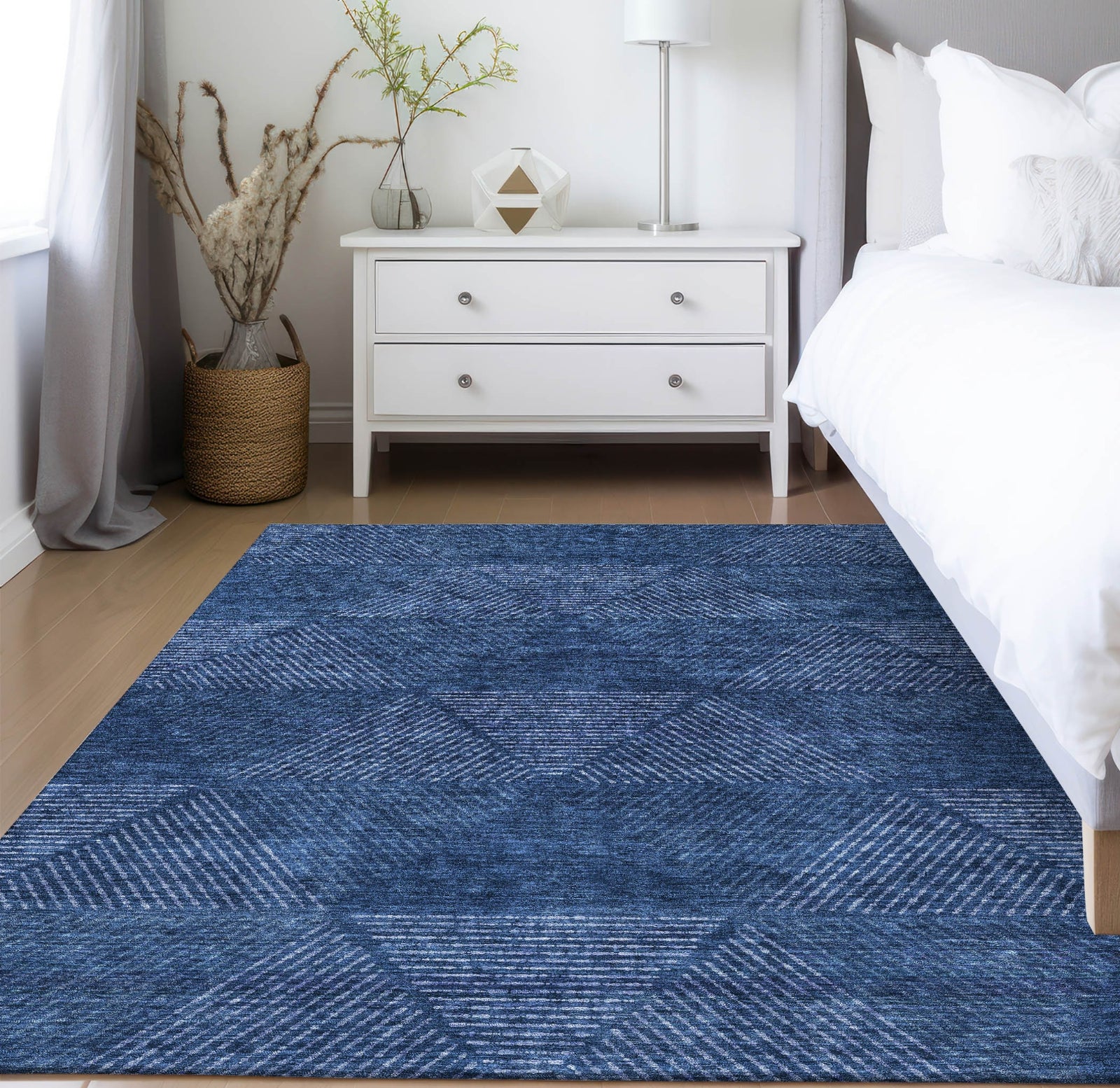 Piper Looms Chantille Geometric ACN777 Navy Machine Washable Area Rug