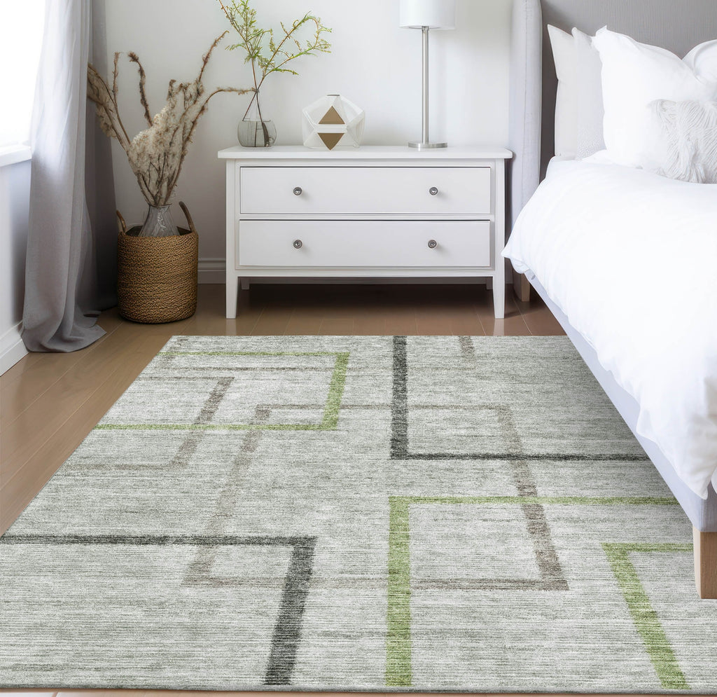 Piper Looms Chantille Geometric ACN826 Green Machine Washable Area Rug