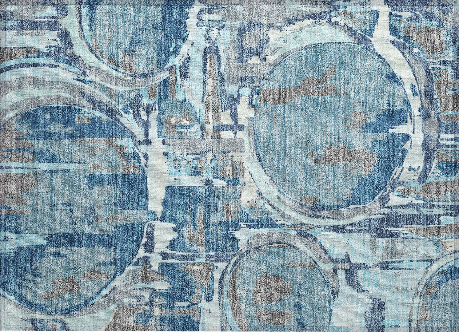 Accentuate your space with our sophisticated area rug, where multi-circle patterns are artfully mixed with abstract-shaped textures, offering a transitional and geometric flair. The pattern is visually striking and adds a contemporary touch. Designed for adaptability, it's UV stabilized for different environments, ultra-thin for effortless integration, and machine-washable, making it a superb choice for family and pet-friendly homes.