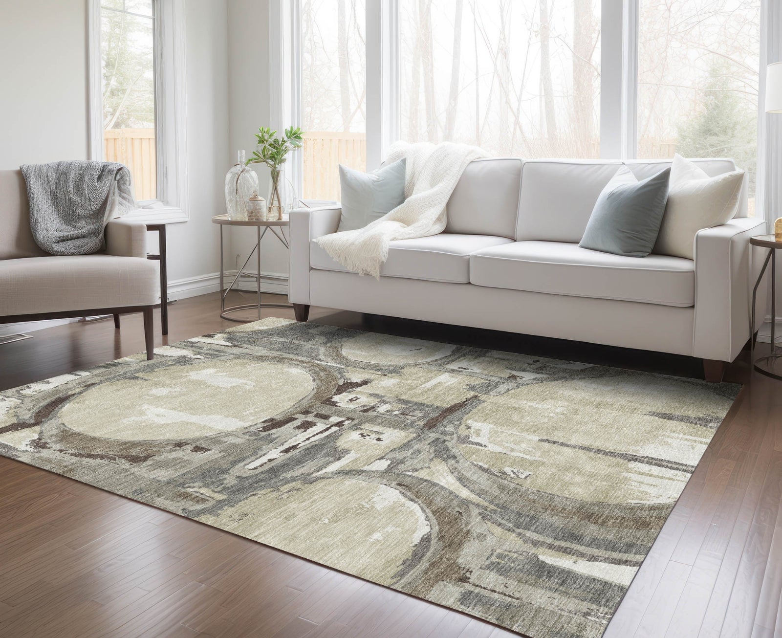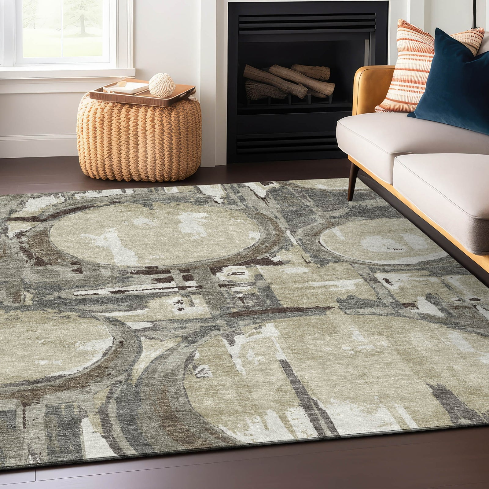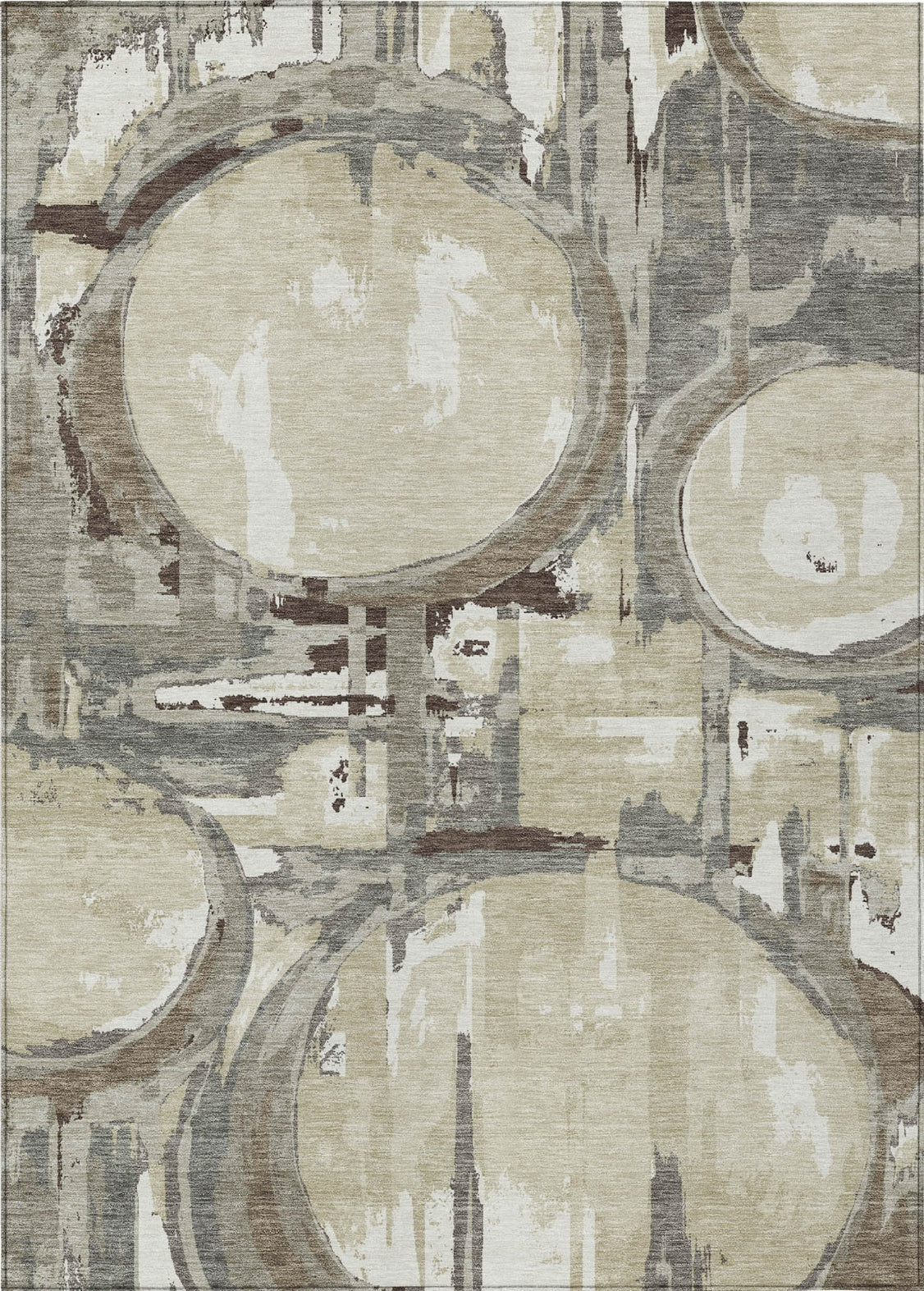 Accentuate your space with our sophisticated area rug, where multi-circle patterns are artfully mixed with abstract-shaped textures, offering a transitional and geometric flair. The pattern is visually striking and adds a contemporary touch. Designed for adaptability, it's UV stabilized for different environments, ultra-thin for effortless integration, and machine-washable, making it a superb choice for family and pet-friendly homes.