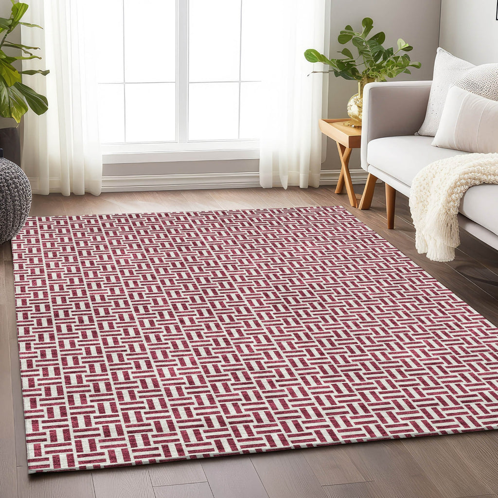 Piper Looms Chantille Geometric ACN911 Burgundy Machine Washable Area Rug