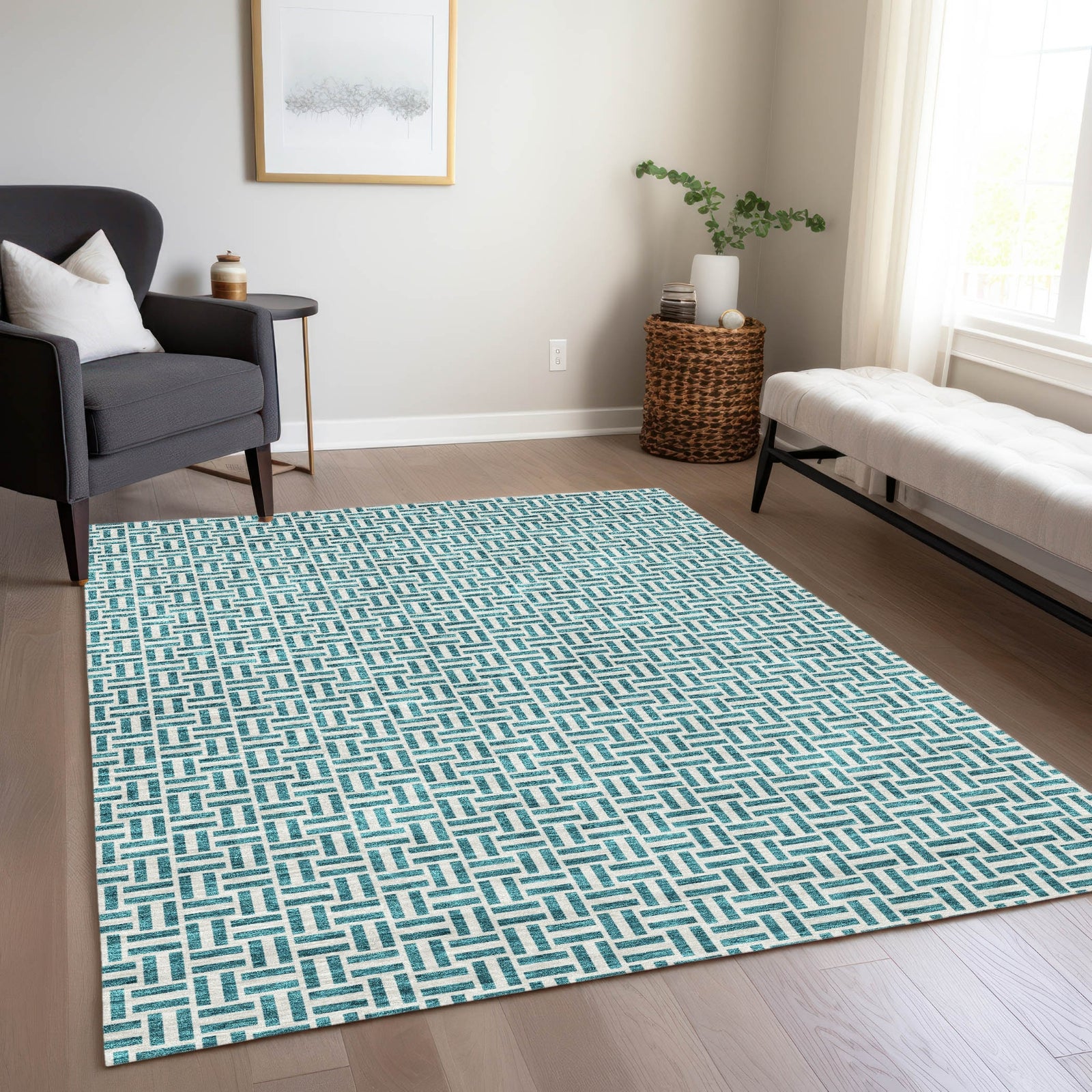 Piper Looms Chantille Geometric ACN911 Teal Machine Washable Area Rug
