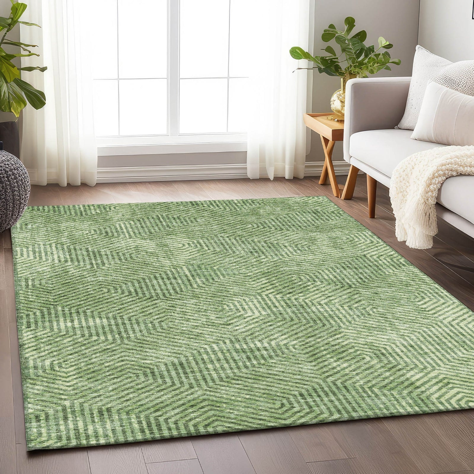 Piper Looms Chantille Geometric ACN912 Green Machine Washable Area Rug