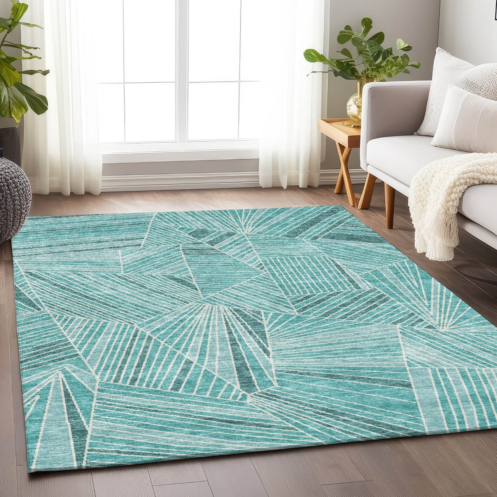 Piper Looms Chantille Geometric ACN915 Teal Machine Washable Area Rug