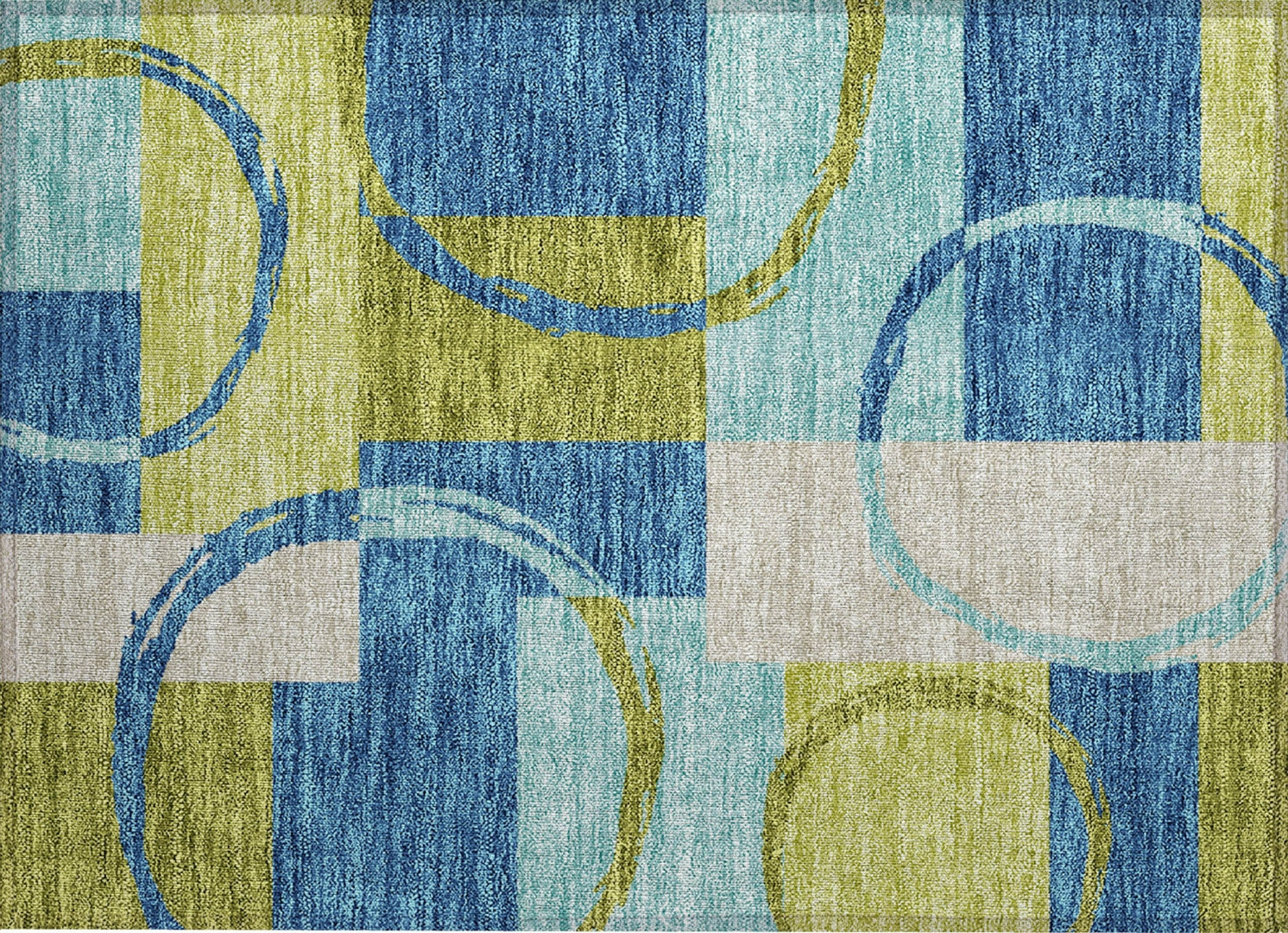 Reimagine your interiors with our area rug that marries circles and rectangles in a geometric masterpiece, promoting a modern yet transitional ambiance. It's designed to stand the test of time with UV stabilization, while its ultra-thin construction ensures a contemporary fit. Being machine-washable, this rug is a champion of convenience and a friend to families and pets alike.