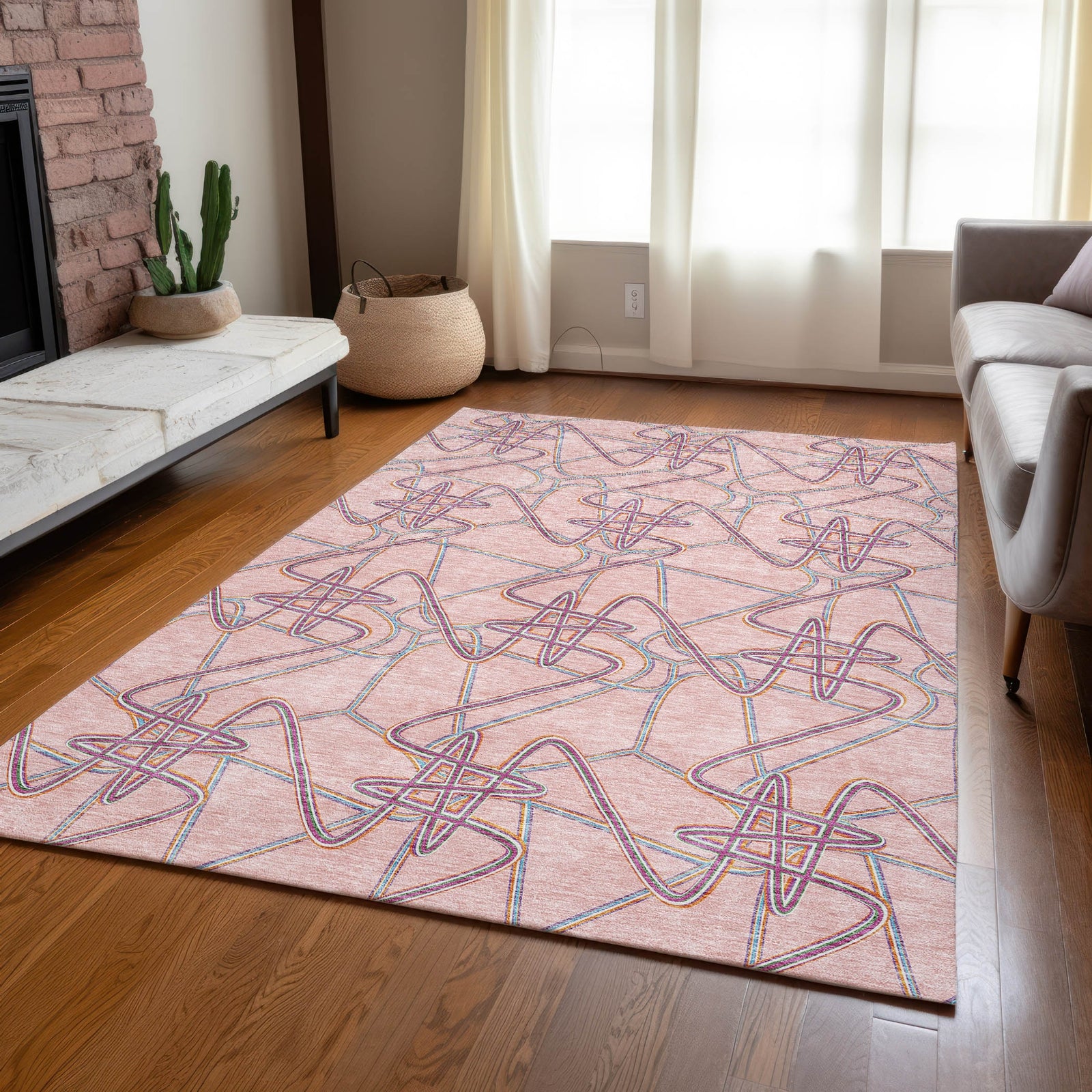 Piper Looms Chantille Geometric ACN947 Pink Machine Washable Area Rug