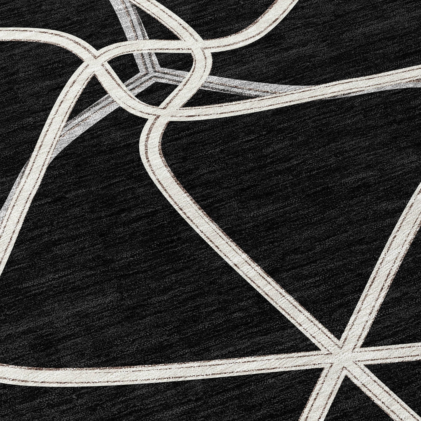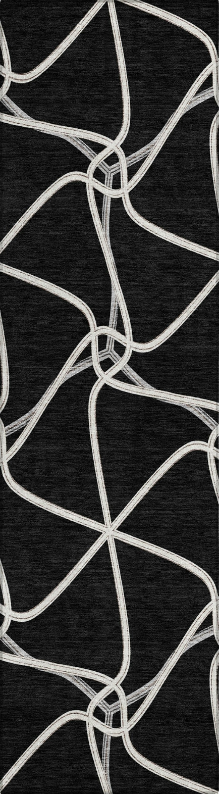 Piper Looms Chantille Geometric ACN948 Black Machine Washable Area Rug