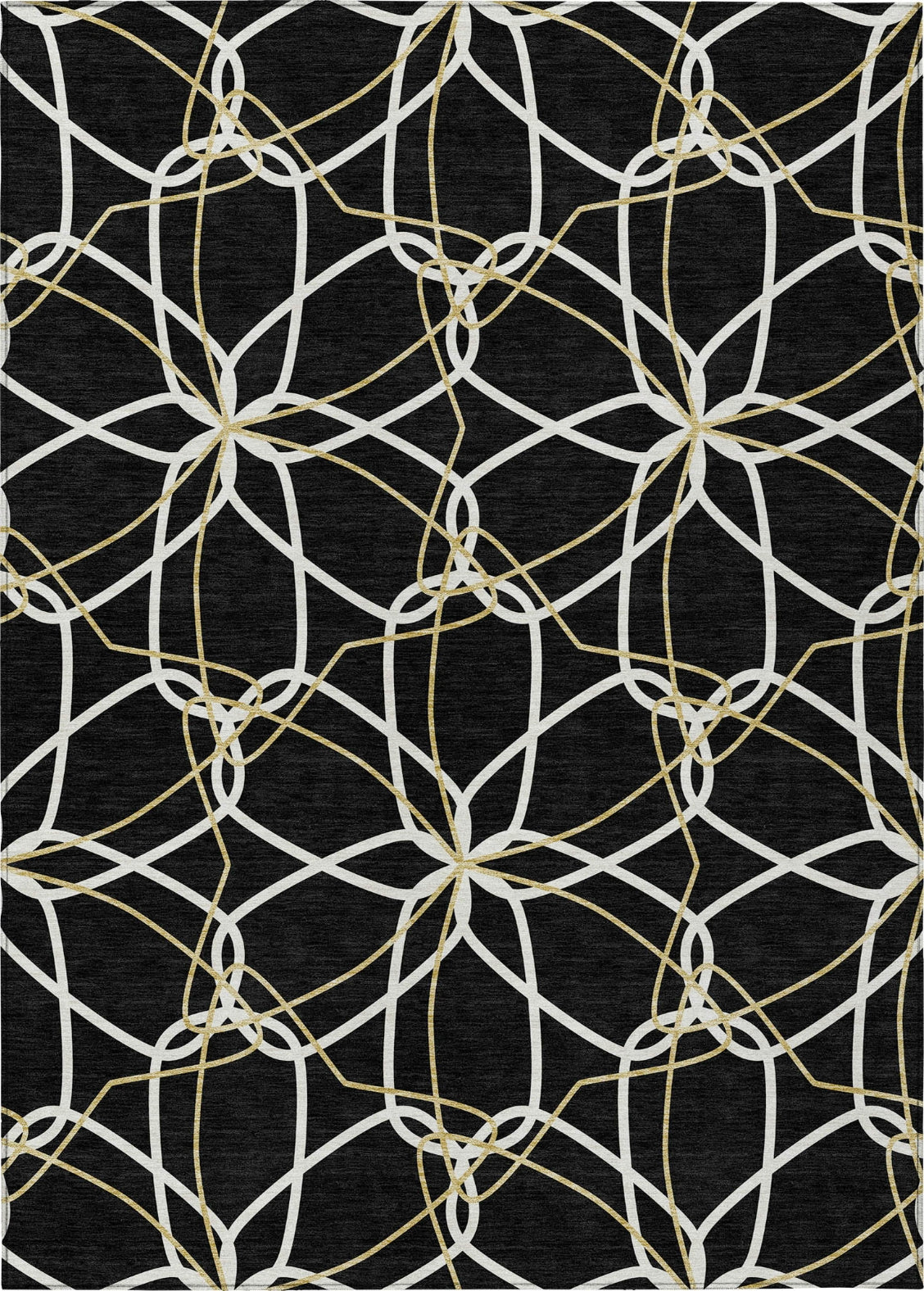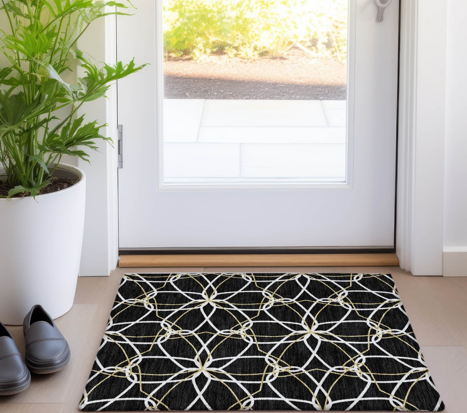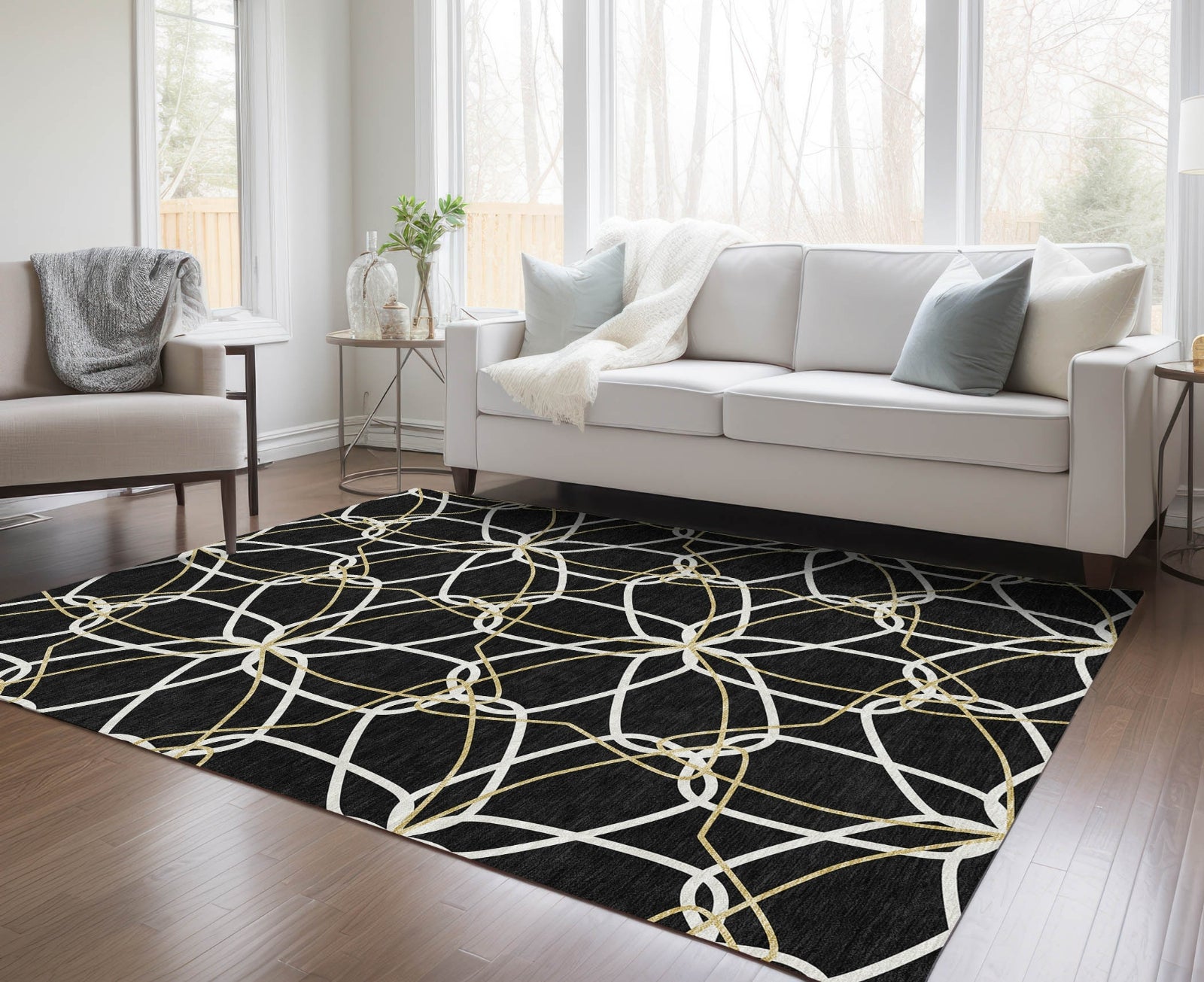 Piper Looms Chantille Geometric ACN950 Black Machine Washable Area Rug
