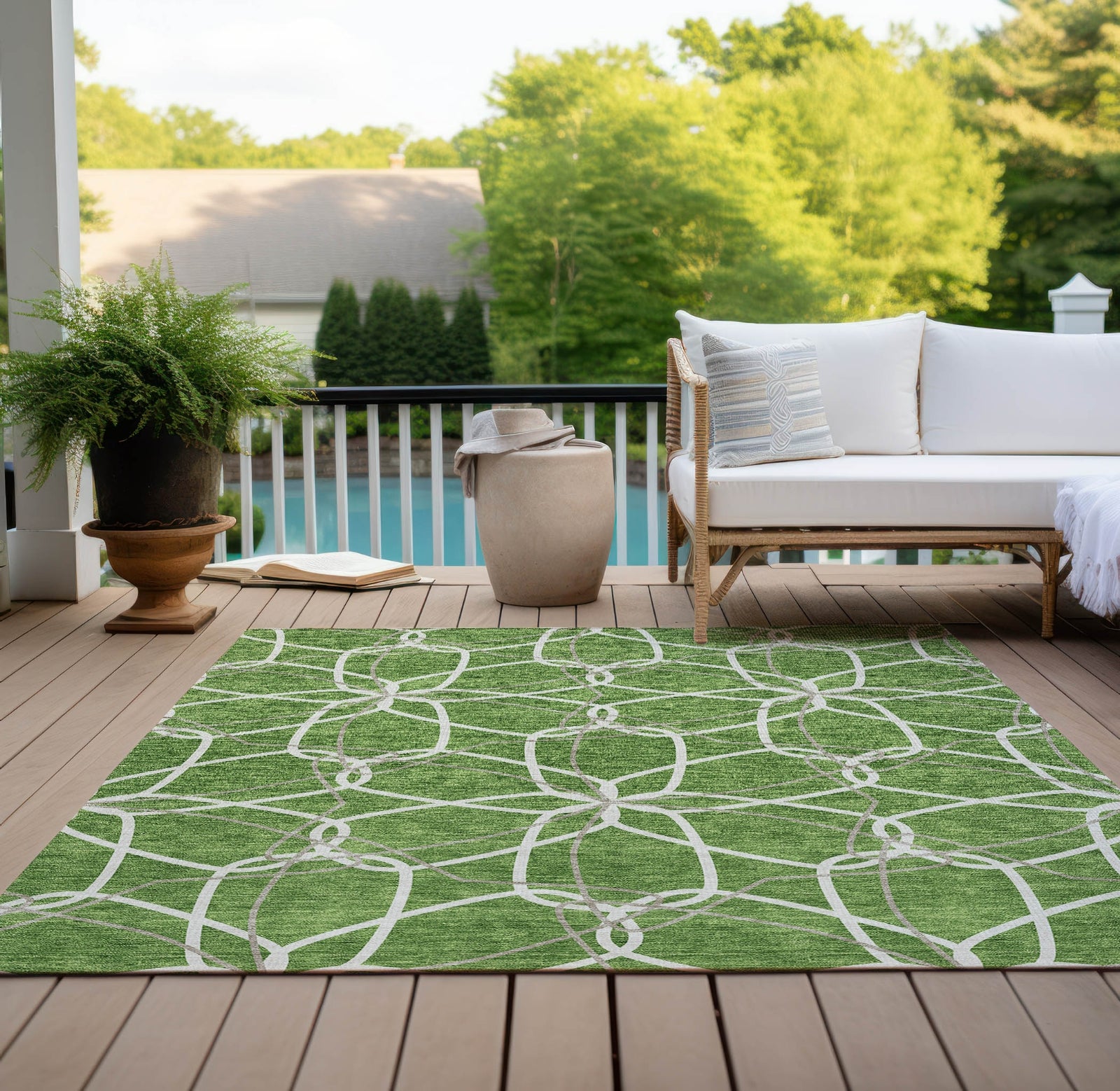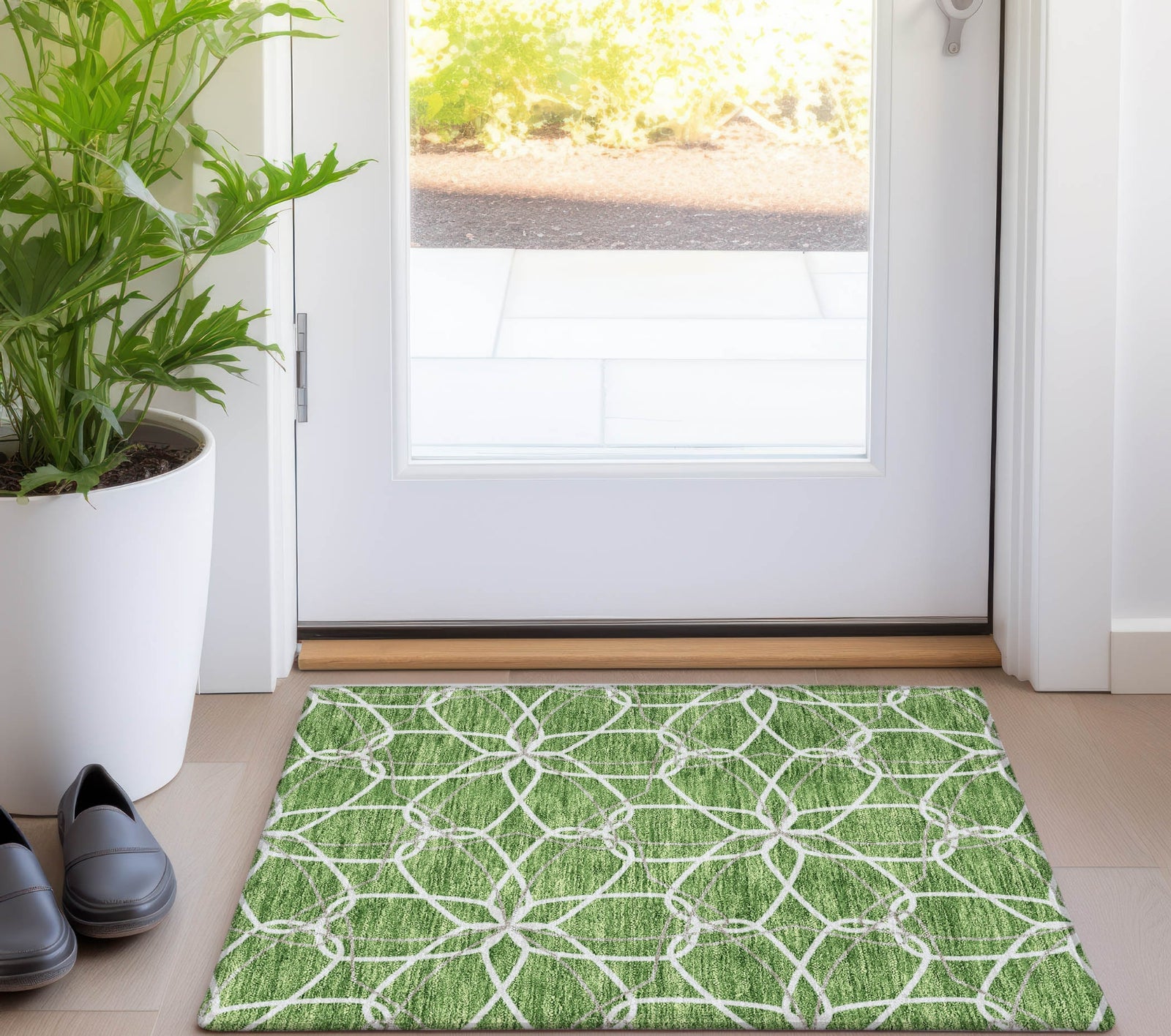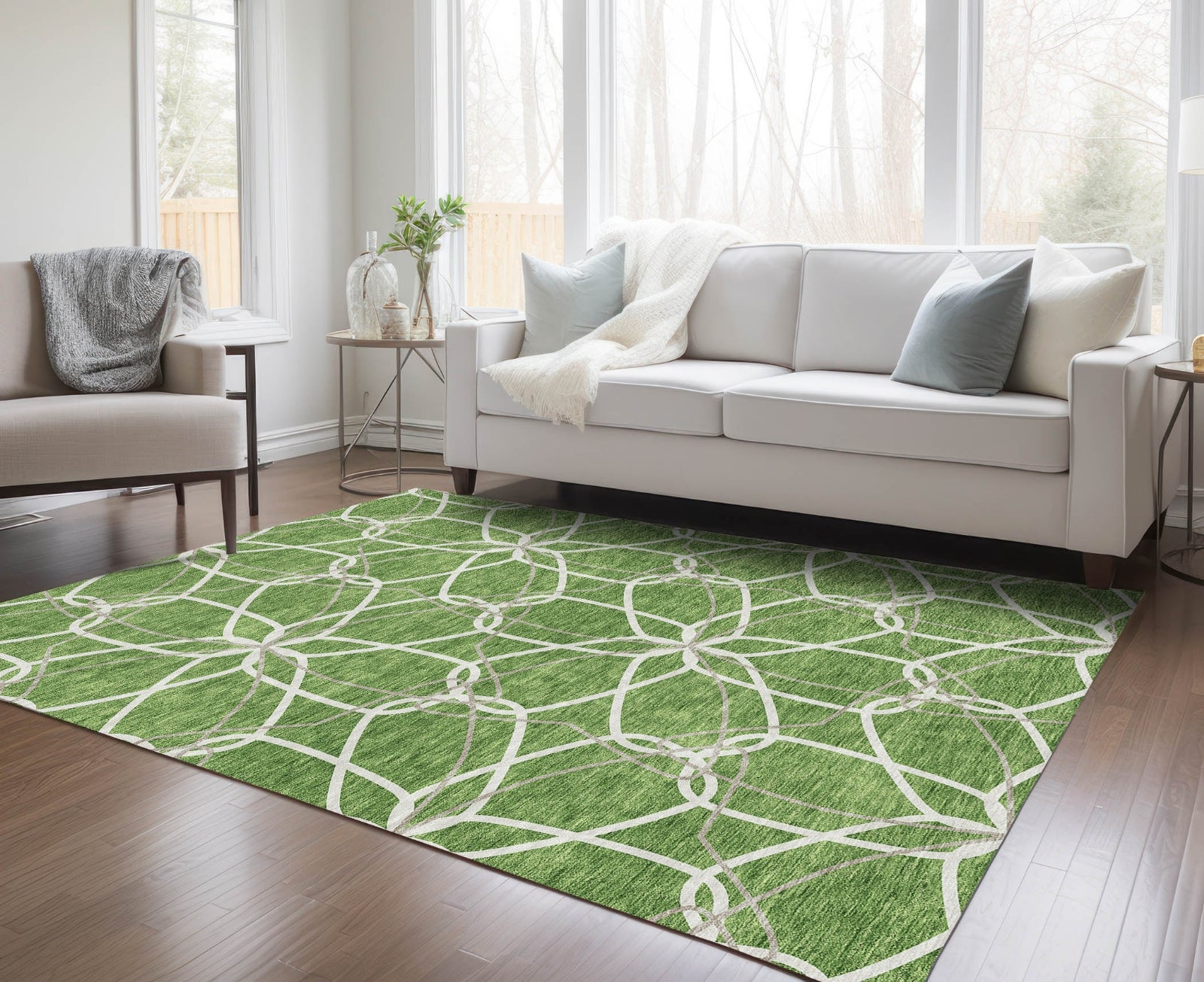 Piper Looms Chantille Geometric ACN950 Green Machine Washable Area Rug