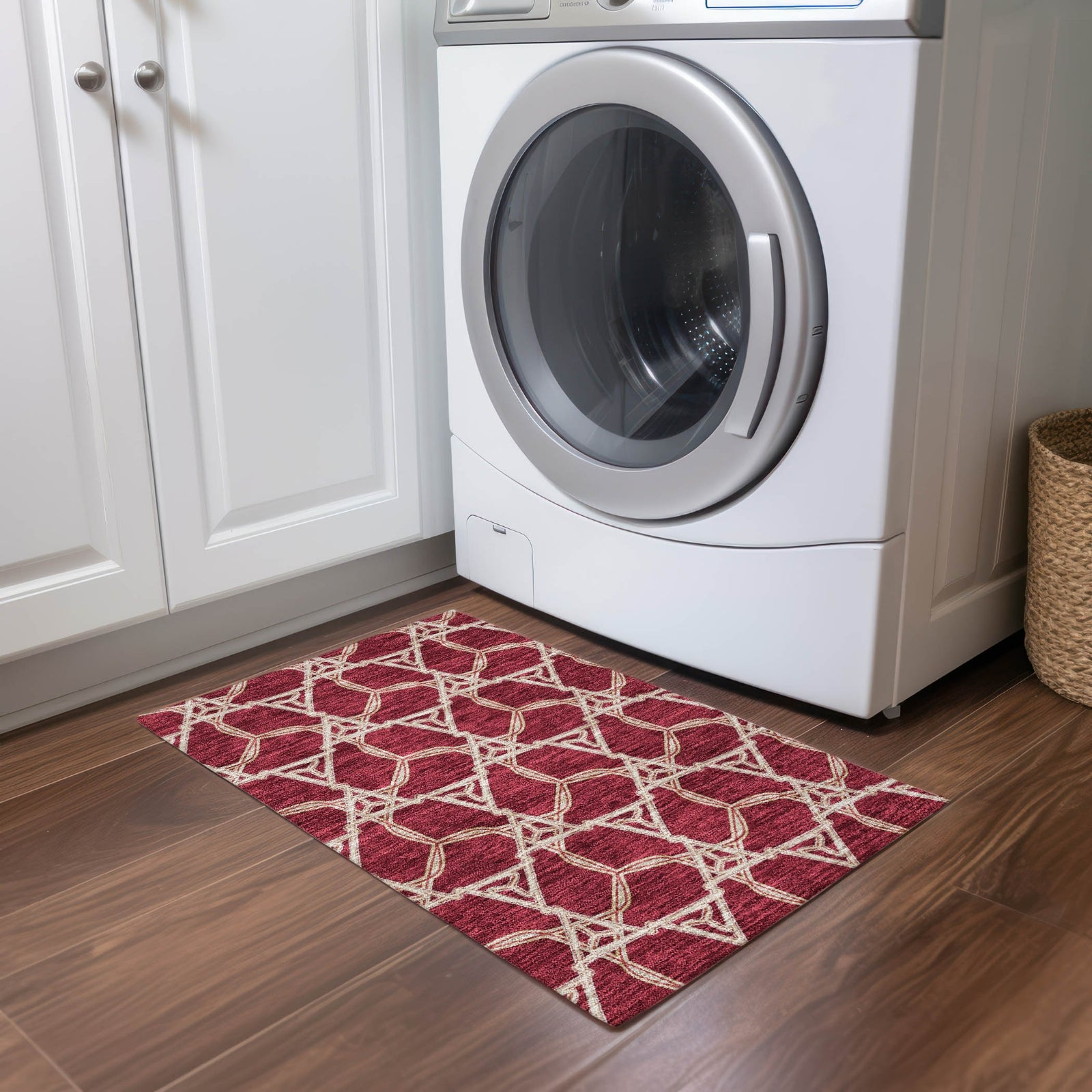 Piper Looms Chantille Geometric ACN959 Burgundy Machine Washable Area Rug