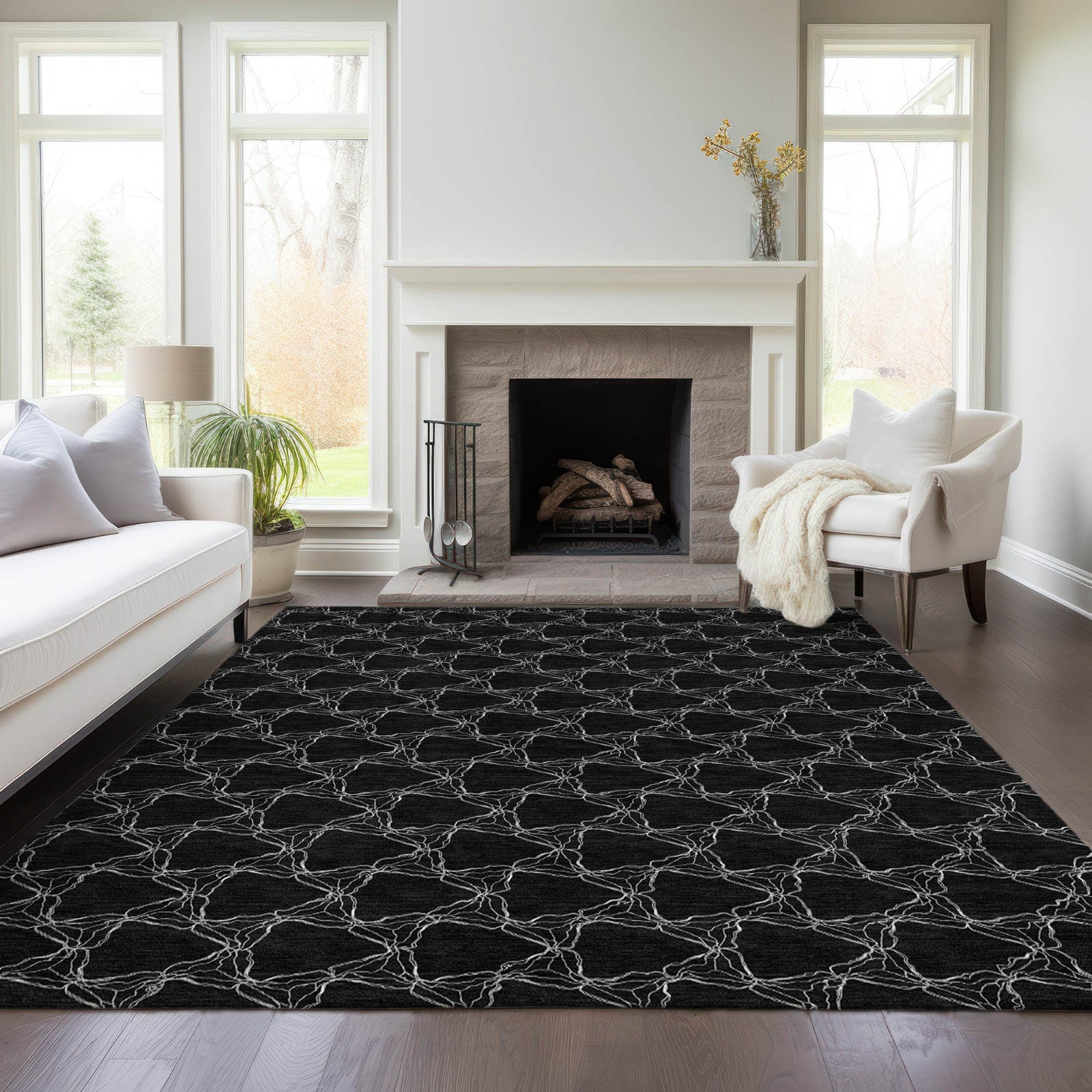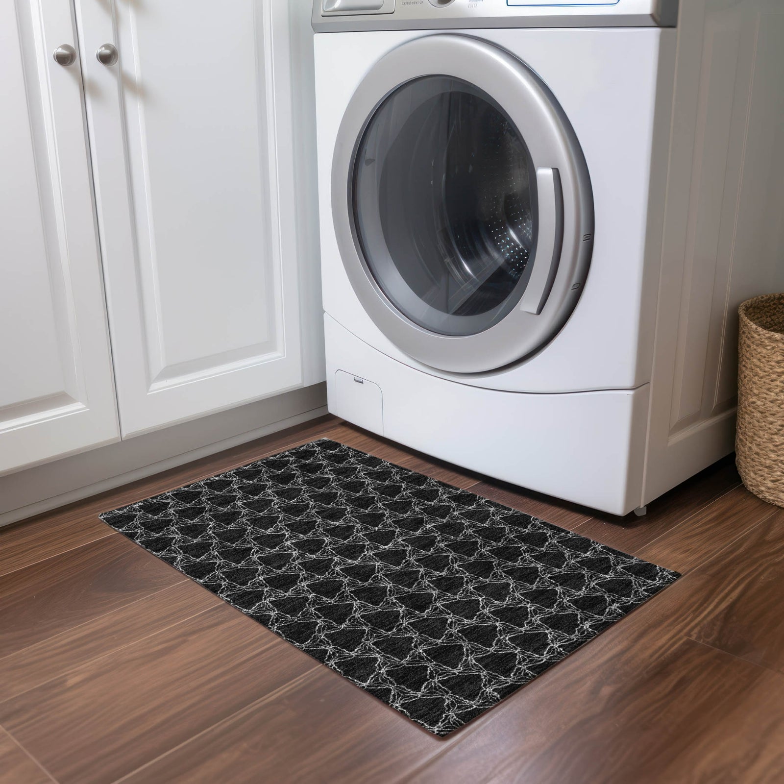 Piper Looms Chantille Geometric ACN960 Black Machine Washable Area Rug