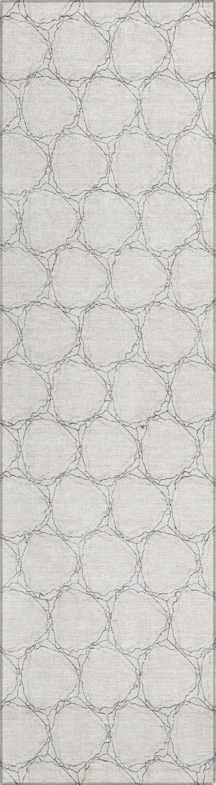 Add a modern twist to your floors with our area rug, presenting diamond motifs wrapped in a geometric embrace by connected lines, suitable for any transitional decor. Its UV-stabilized fabric endures indoors and out, while the ultra-thin construction and machine-washable features make it a hassle-free addition to any active, pet-friendly household.