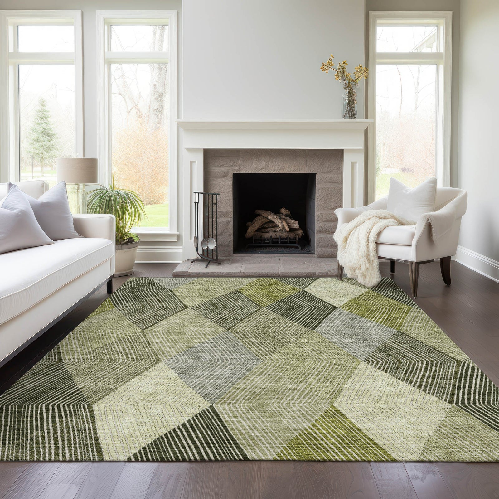 Piper Looms Chantille Geometric ACN962 Olive Machine Washable Area Rug