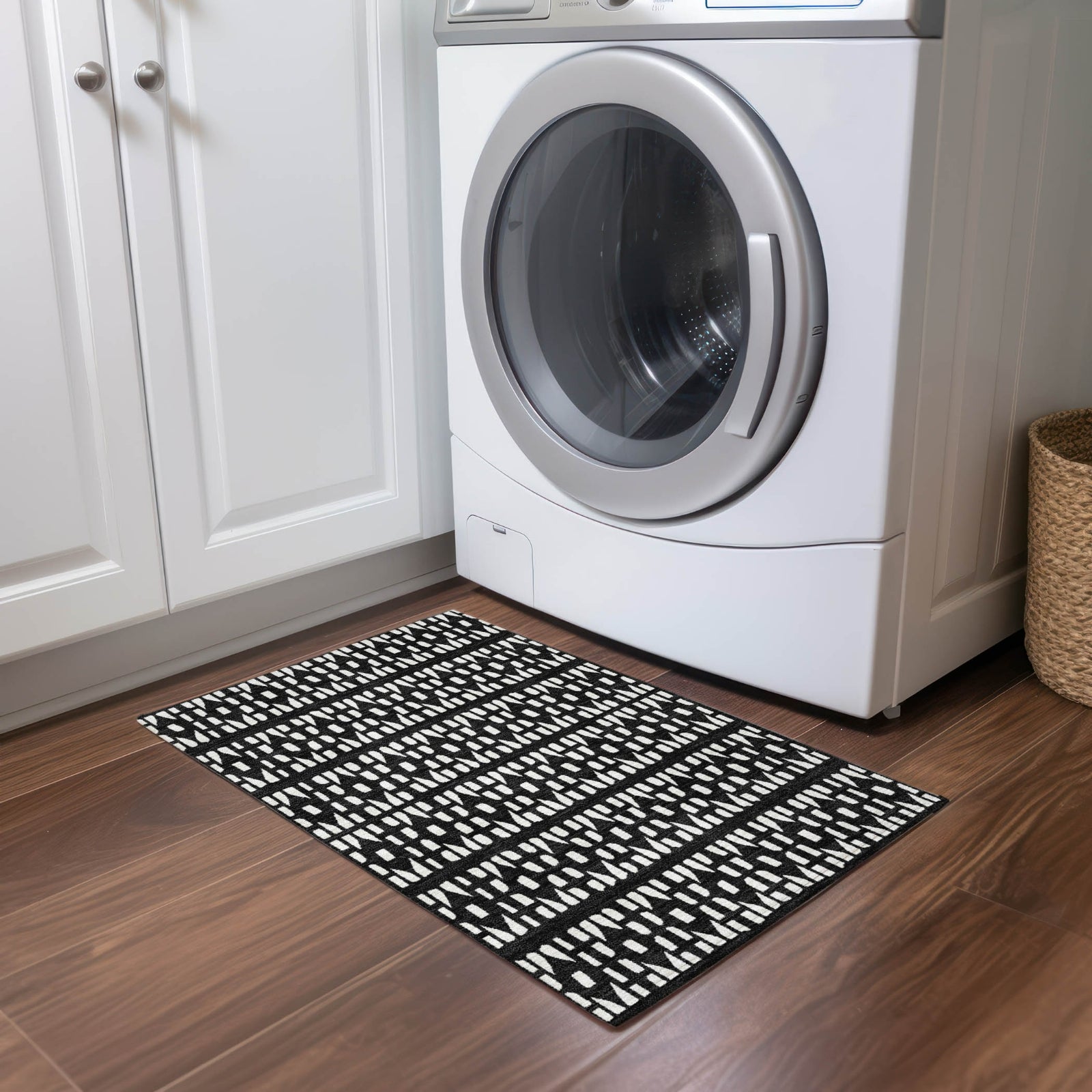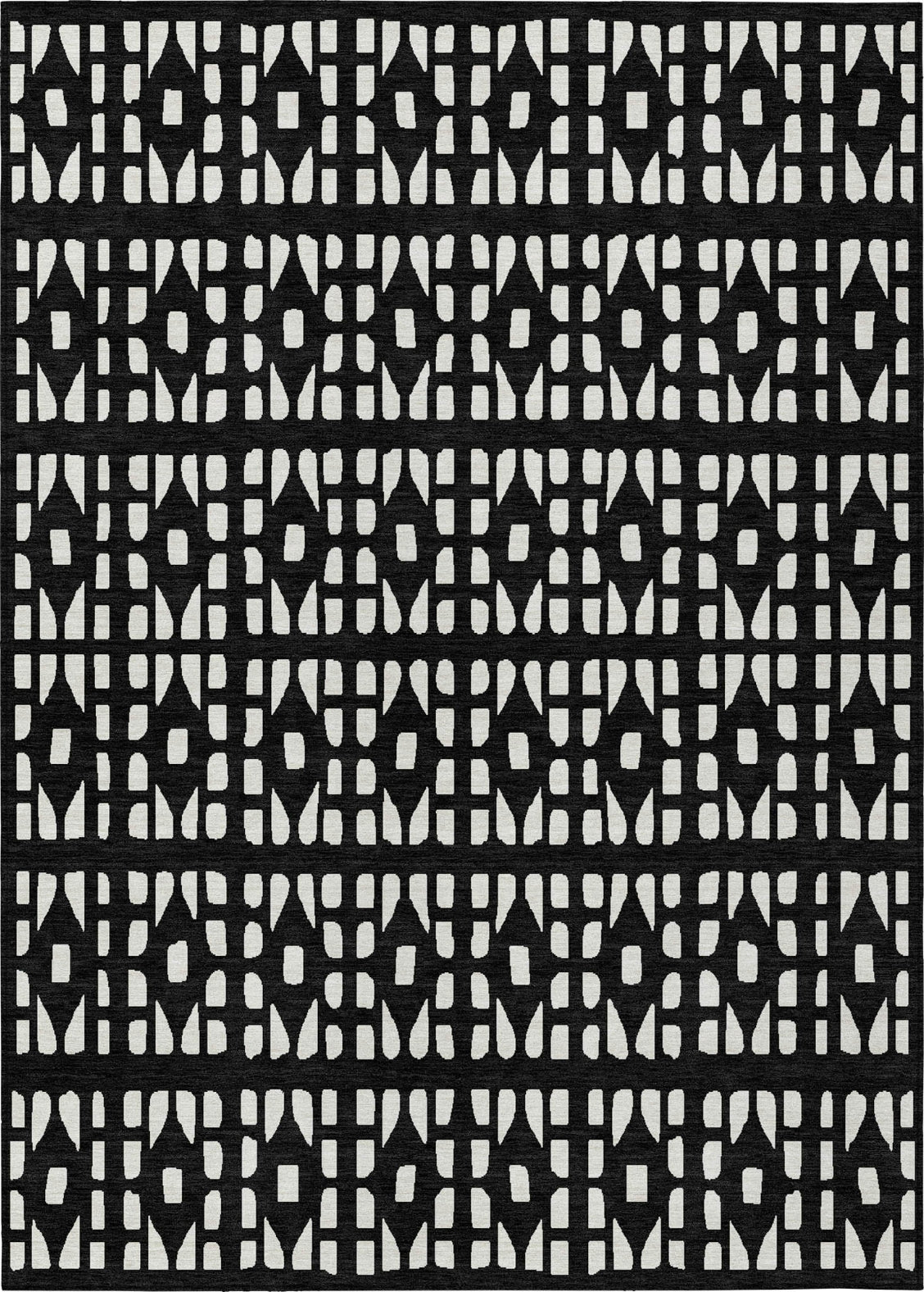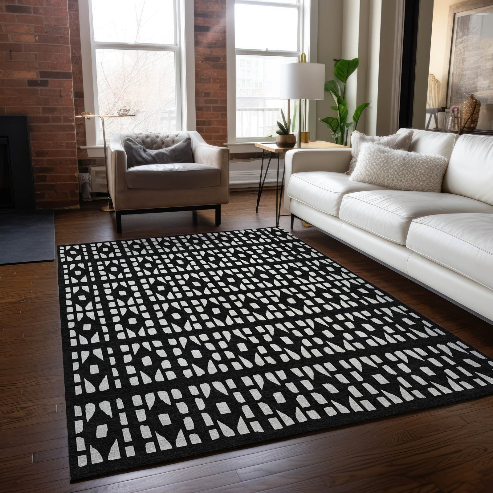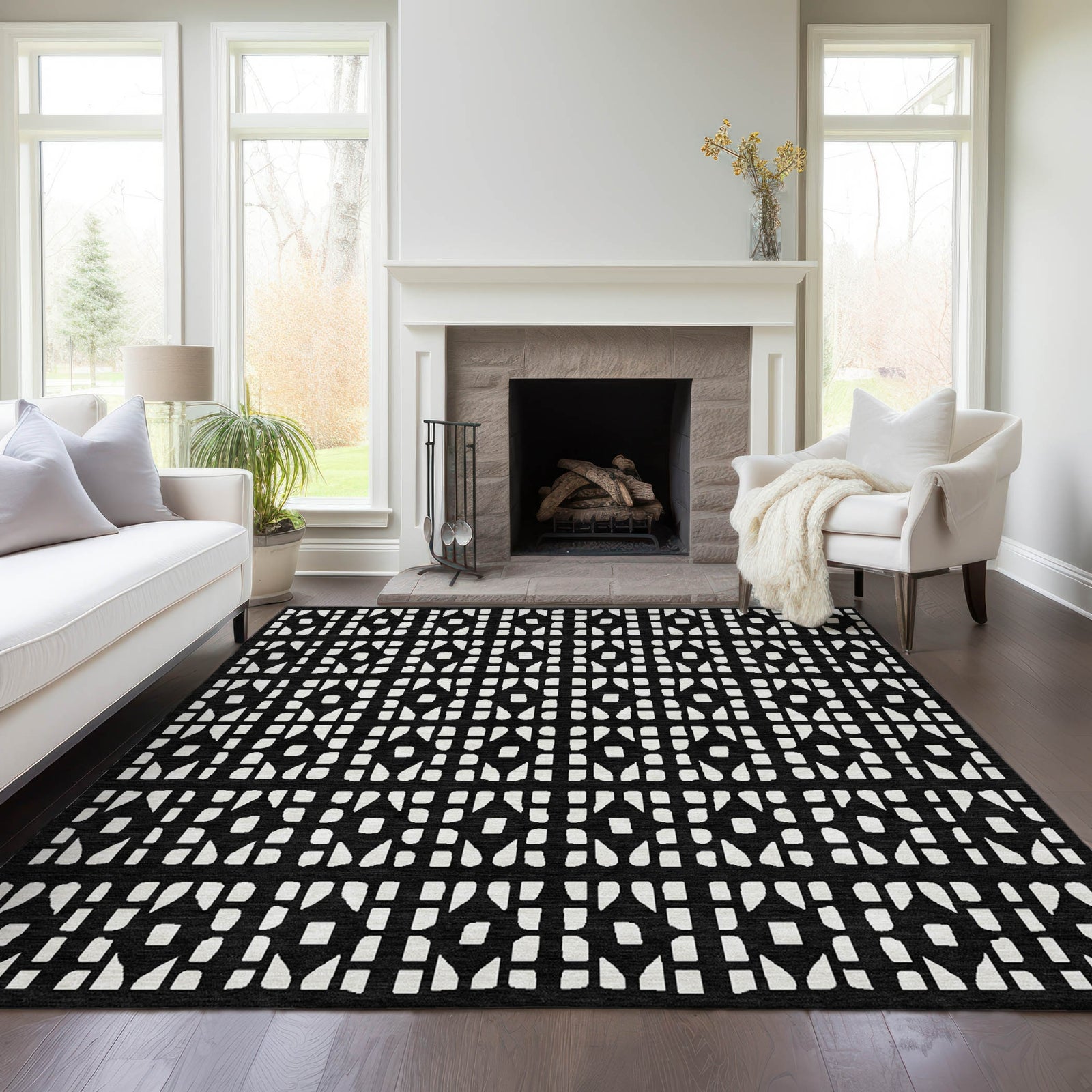 Piper Looms Chantille Geometric ACN963 Black Machine Washable Area Rug