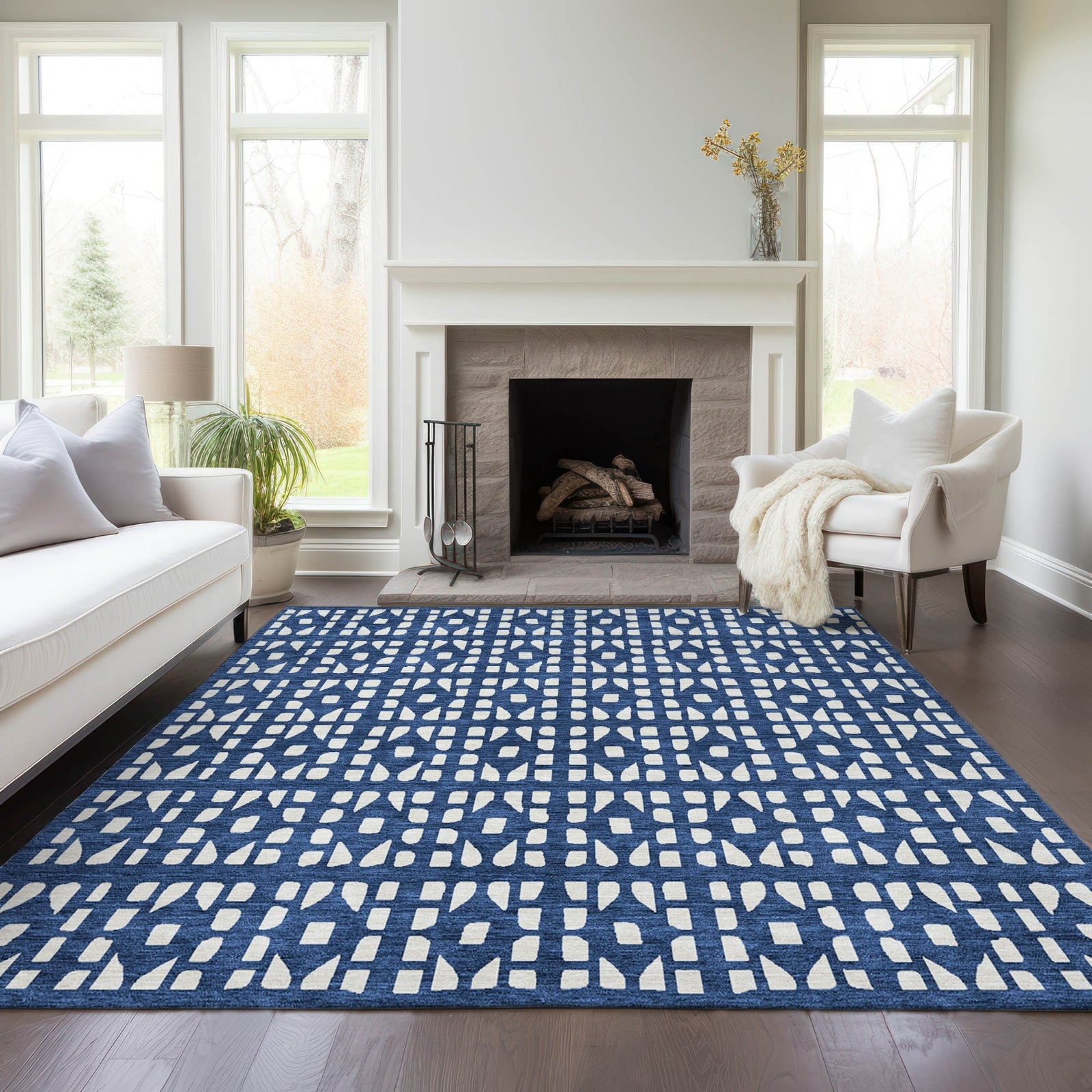 Piper Looms Chantille Geometric ACN963 Navy Machine Washable Area Rug