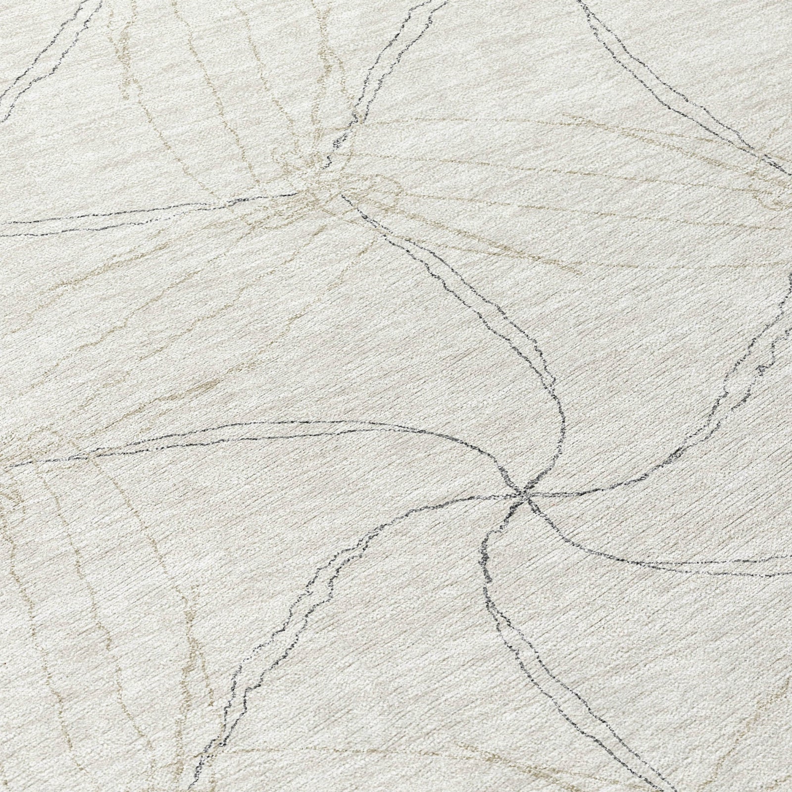 The modern feel of our area rug's soft-line petals infuses transitional spaces with geometric elegance. It's a durable, UV-stabilized, ultra-thin, and machine-washable option that provides functionality and style to both family and pet-friendly homes.