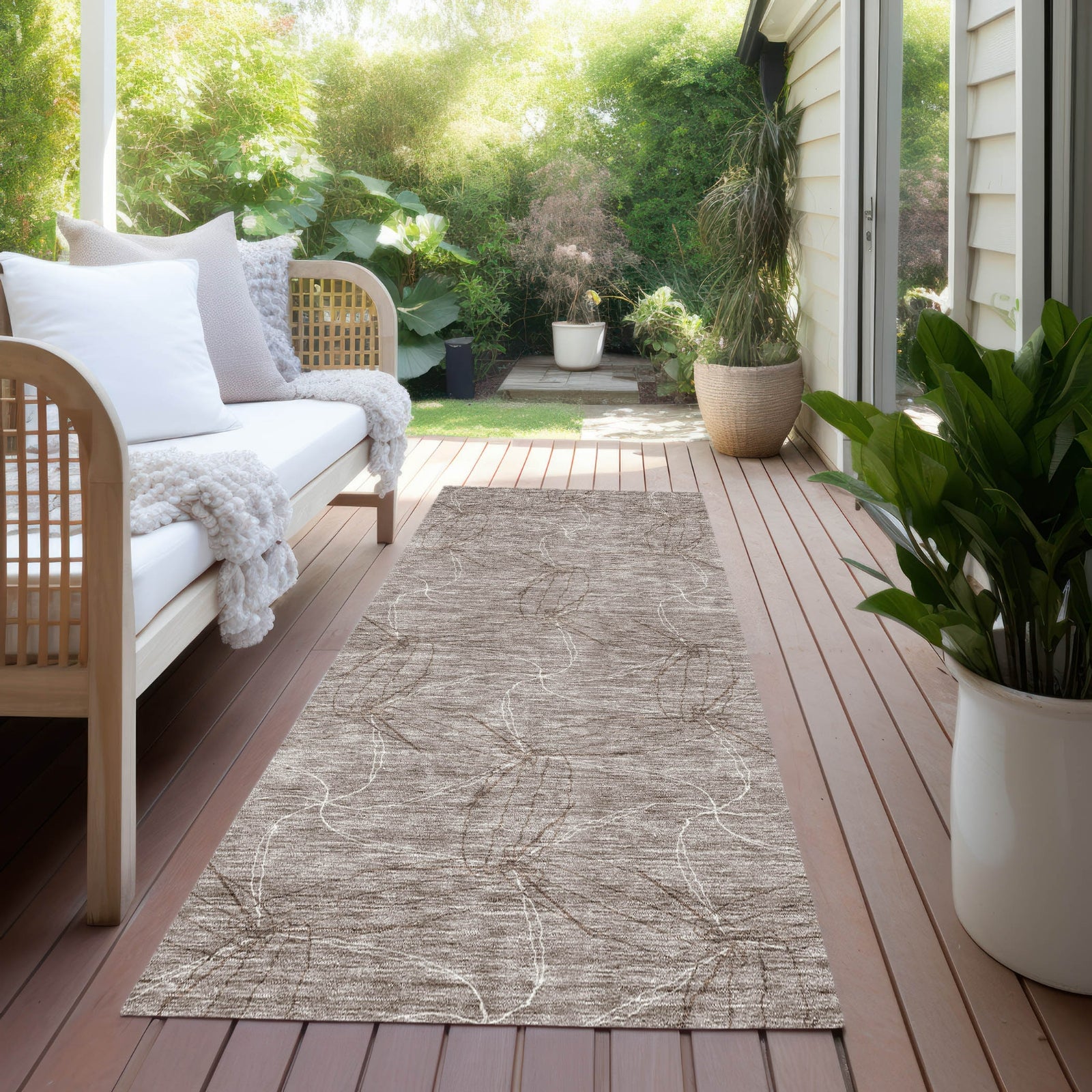 The modern feel of our area rug's soft-line petals infuses transitional spaces with geometric elegance. It's a durable, UV-stabilized, ultra-thin, and machine-washable option that provides functionality and style to both family and pet-friendly homes.