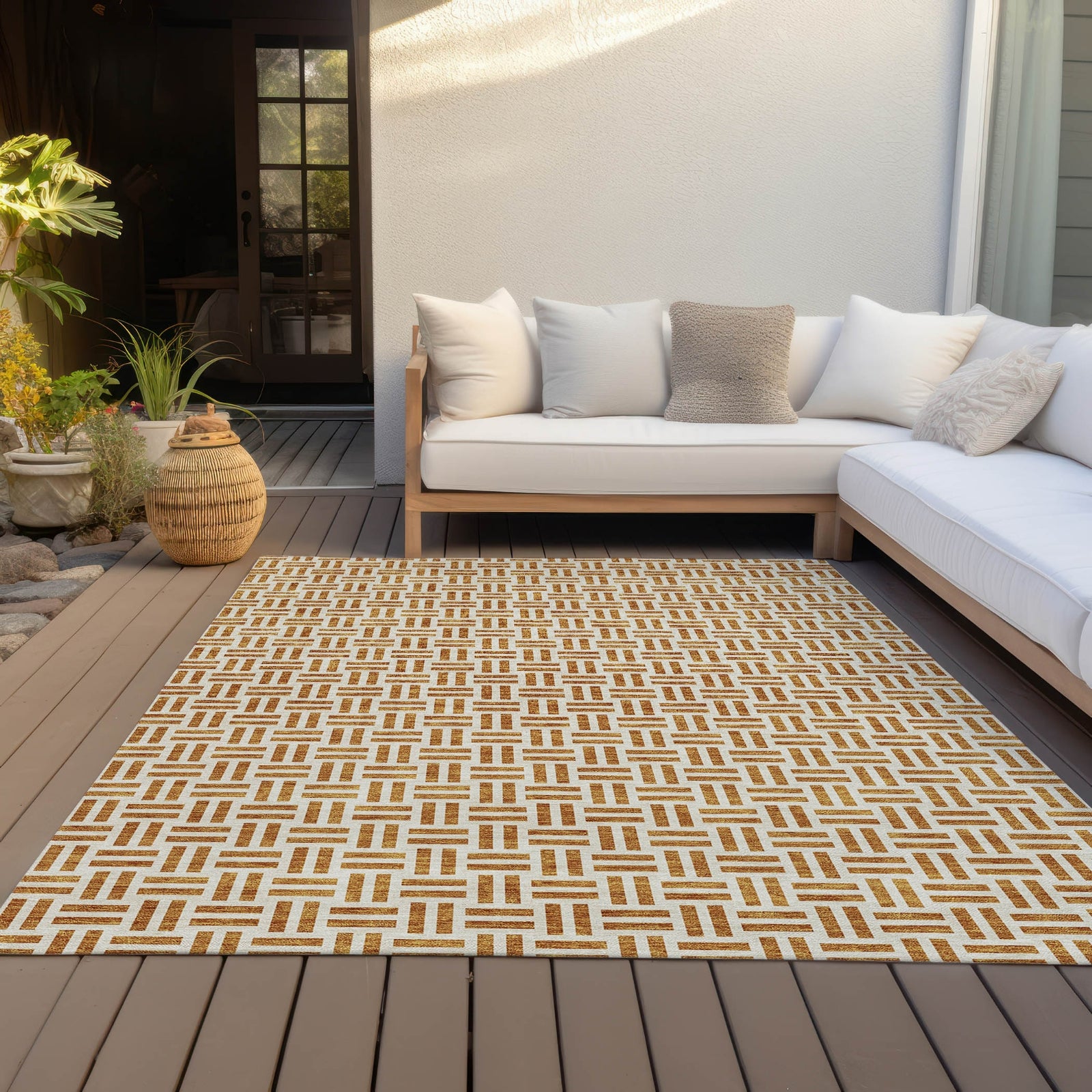 Adorn your space with our area rug, exhibiting a basketweave pattern that encapsulates transitional design with a geometric twist. This piece stands up to the sun's rays and foot traffic with UV stabilization, lies flat with ultra-thin construction, and offers easy maintenance as it's machine-washable, making it the ultimate addition to a lively family home.
