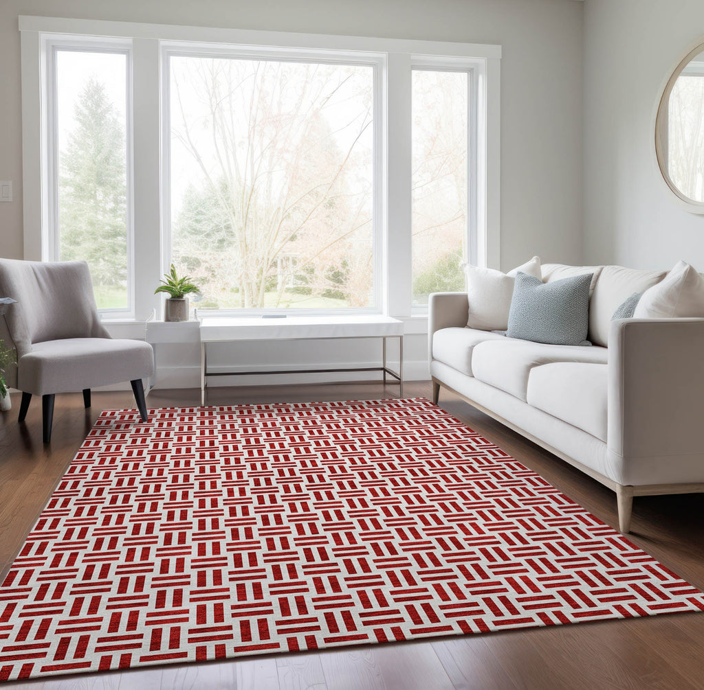 Piper Looms Chantille Geometric ACN978 Red Machine Washable Area Rug