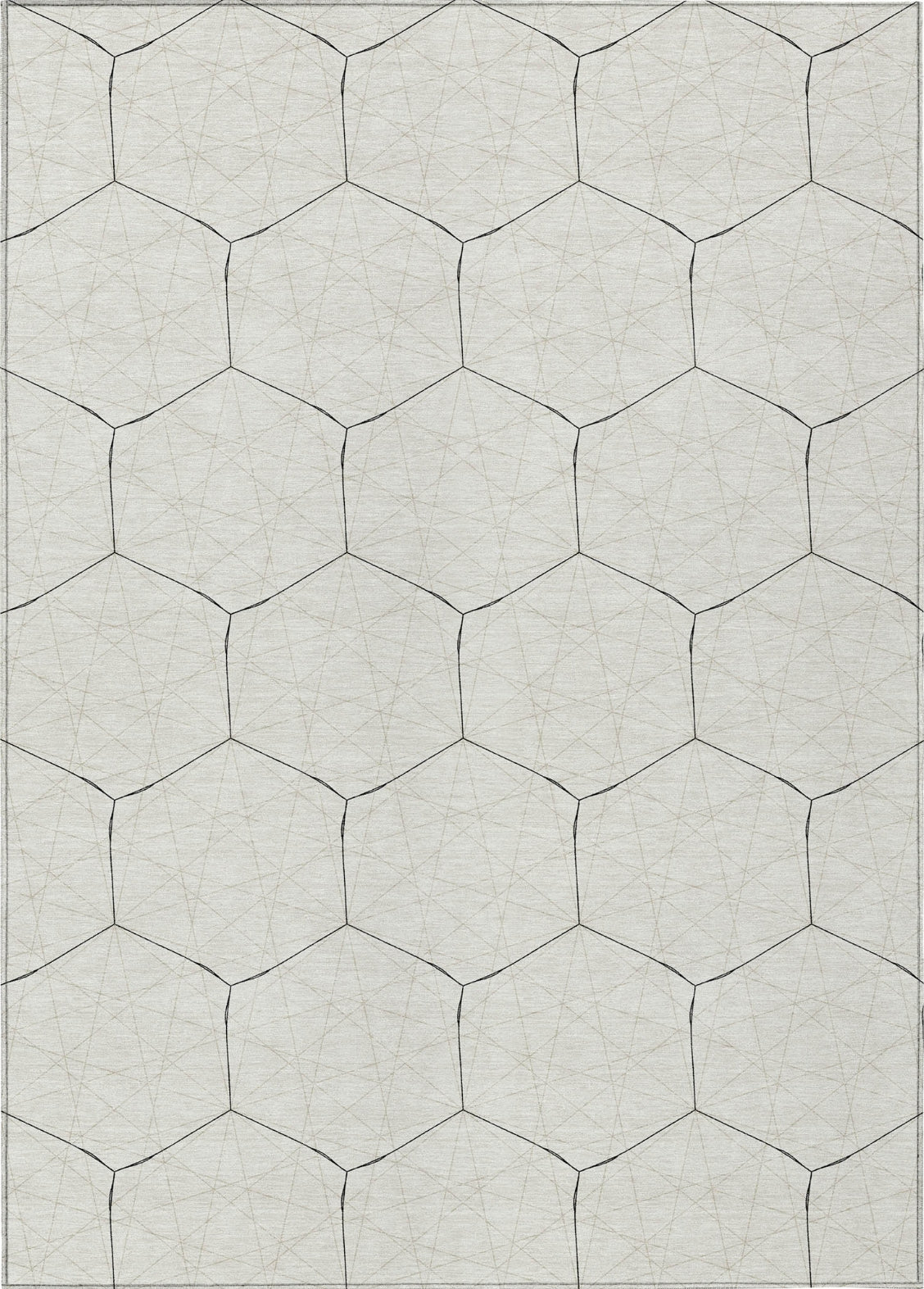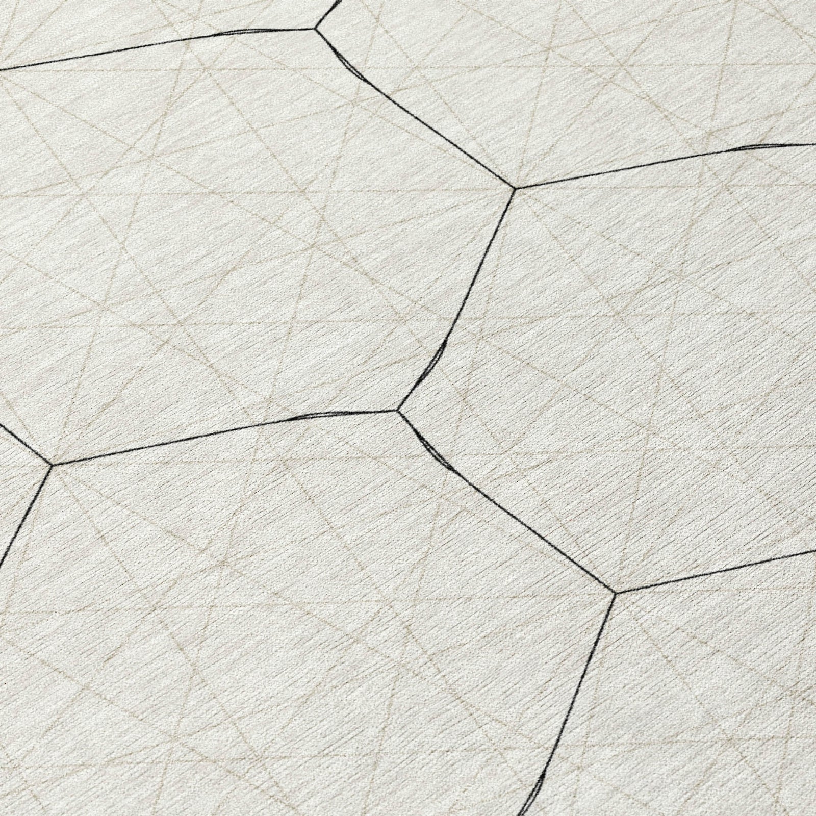 Immerse yourself in contemporary sophistication with our captivating area rug boasting a web-like geometric pattern paired with transitional geometric shapes. Meticulously crafted, this rug adds a touch of elegance to any room with its unique design. Engineered with UV stabilization, its perfect for indoor or outdoor use, preserving its vibrant colors in any environment. Its ultra-thin construction adds a sleek and modern touch to your decor while offering flexibility in placement. With machine-washable features, cleaning and maintaining the rug is a breeze, ideal for busy households. And, its family and pet-friendly, offering a cozy and resilient surface for all to enjoy.