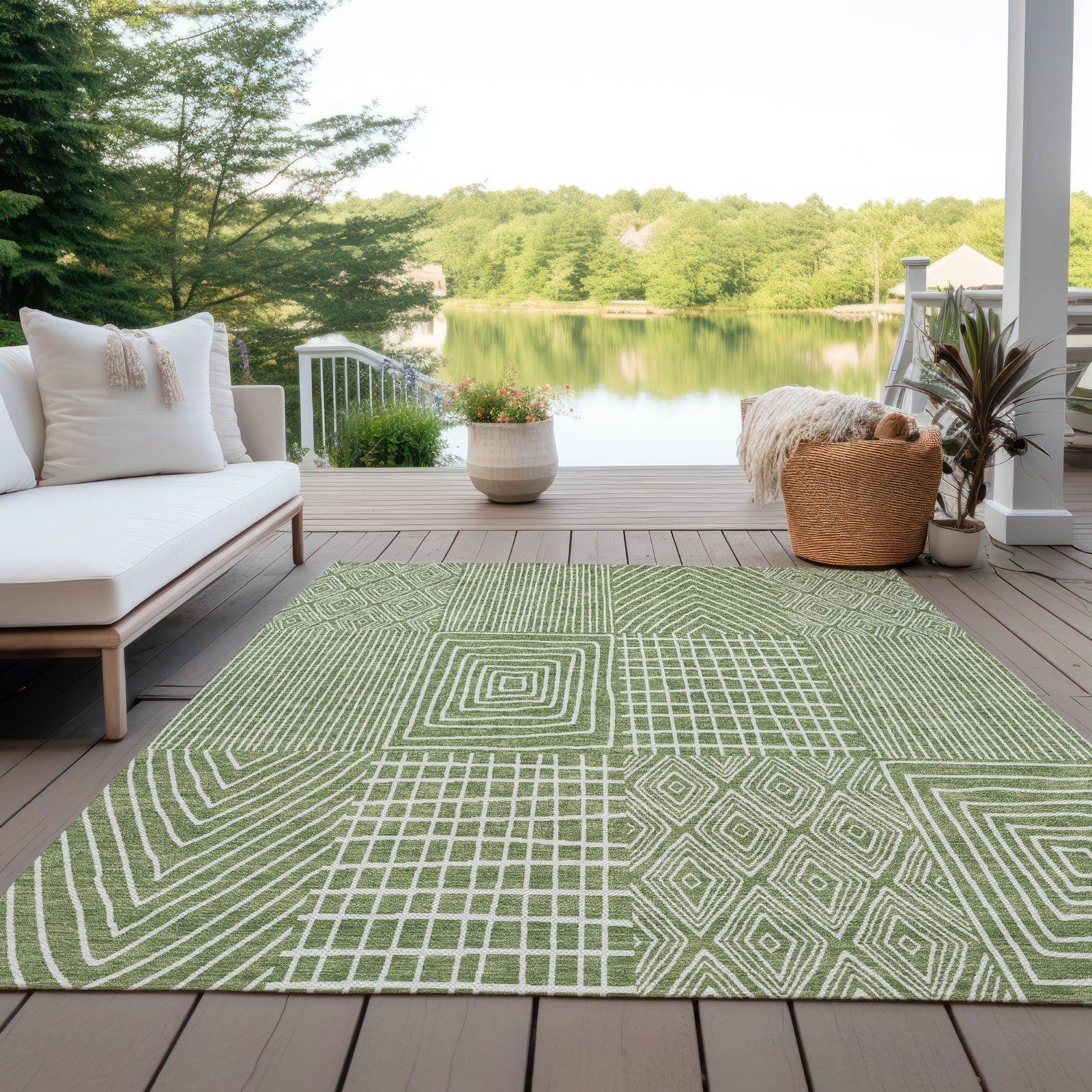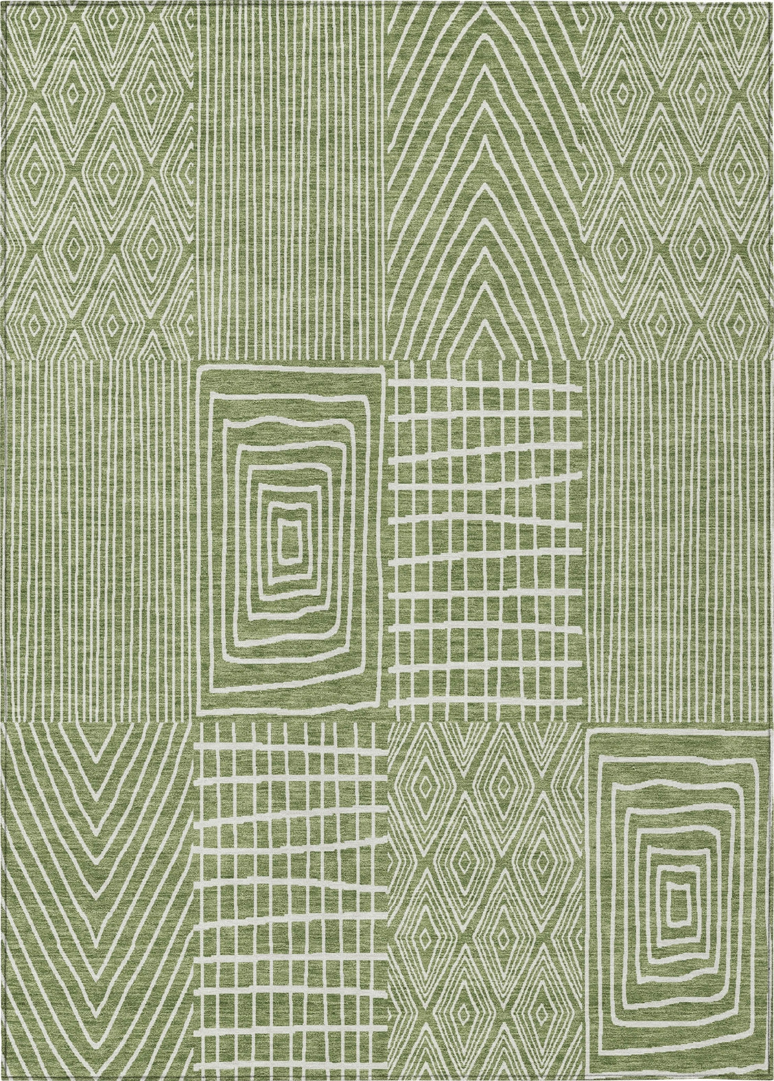 Piper Looms Chantille Geometric ACN990 Green Machine Washable Area Rug