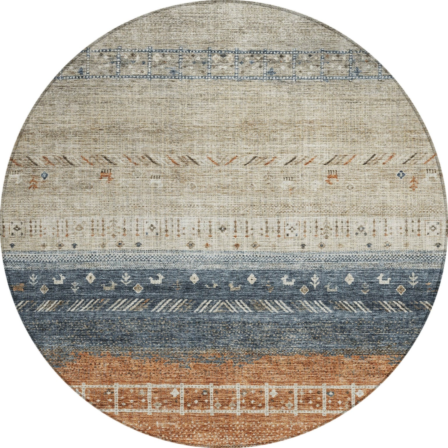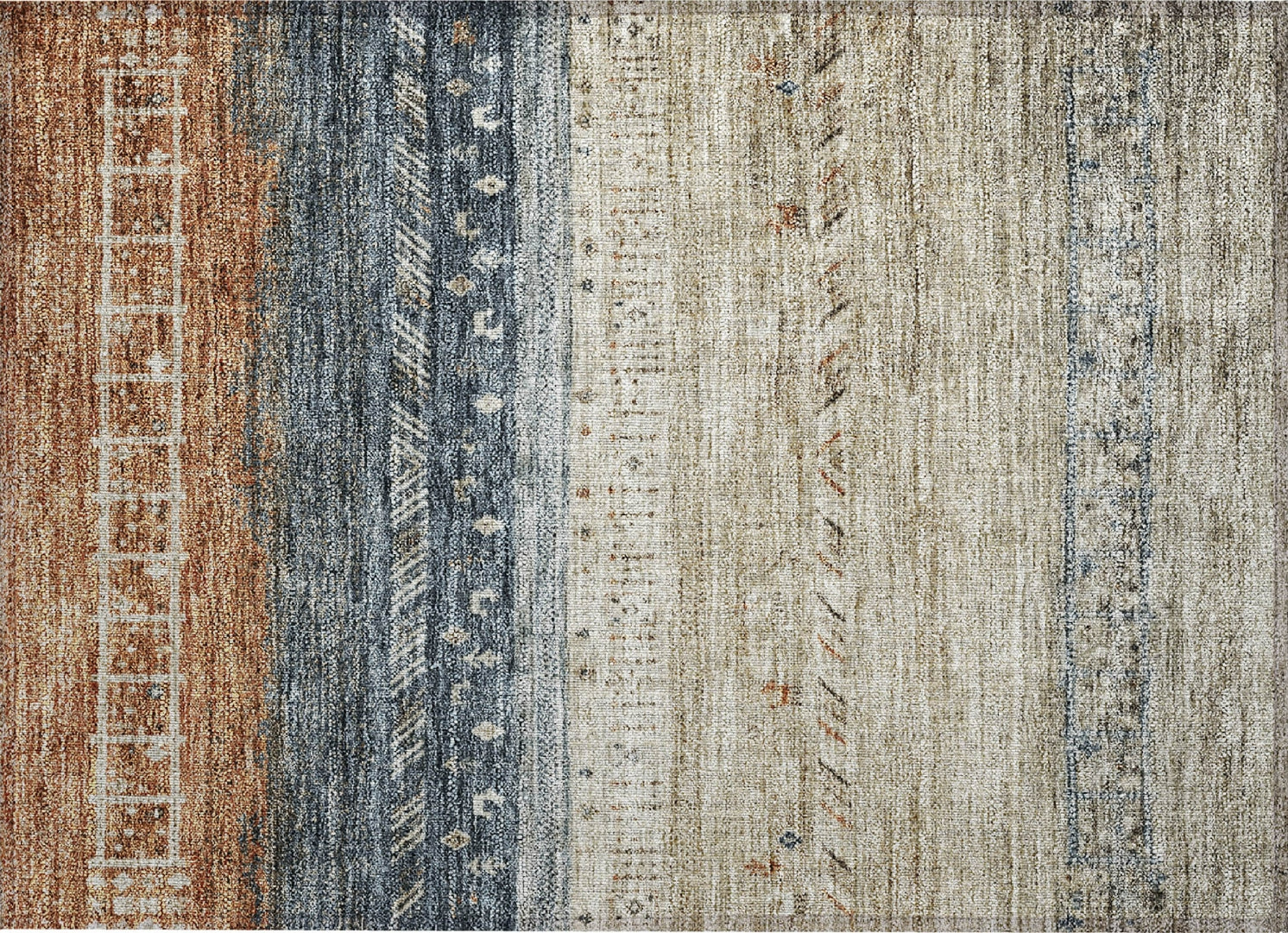 Our area rug combines traditional and global aesthetics with small motifs of diamonds, animals, and sticks that add timeless charm to any space. UV stabilized to withstand the elements indoors or out, it boasts an ultra-thin build for easy positioning. Machine-washable and family-friendly, this rug offers both style and convenience for busy households.