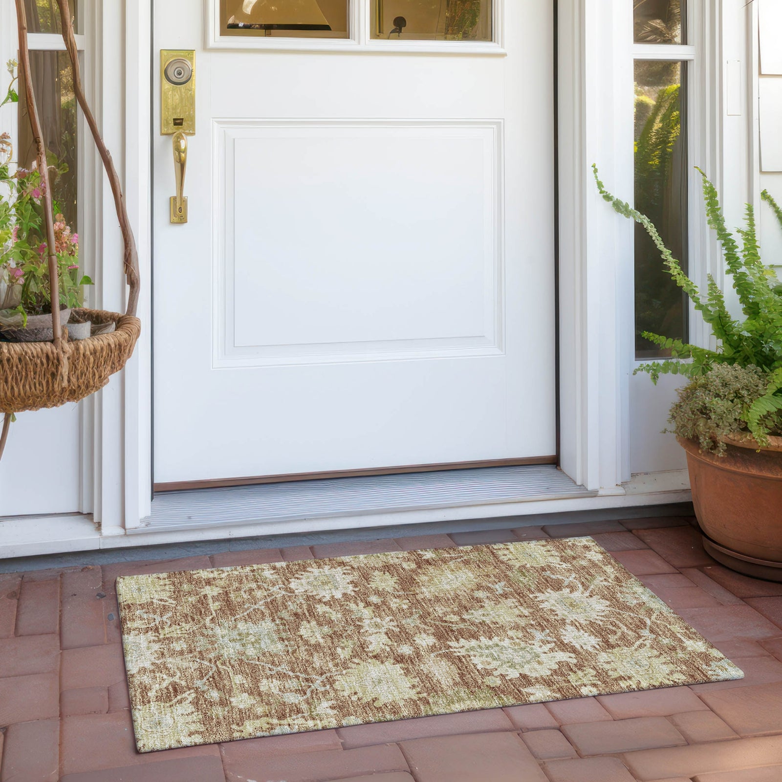 Add sophistication to your home with our area rug, featuring beautifully detailed motifs with a global vintage effect that seamlessly integrate traditional and global design elements. UV stabilized for lasting color, it's perfect for indoor or outdoor use. The ultra-thin construction ensures easy placement, and its machine-washable nature makes it a practical choice for families and pet owners.