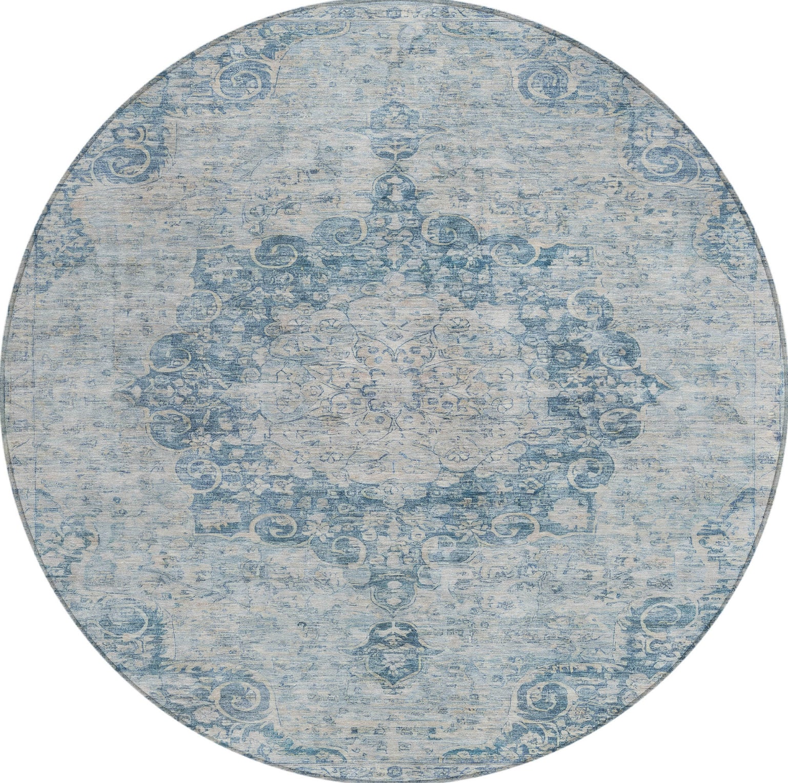 This rug presents a large center medallion with ornate motifs in the corners, reflecting a traditional style with a global pattern. The detailed design adds sophistication and elegance to any room. UV stabilized for indoor or outdoor use, it offers lasting beauty and durability. The ultra-thin profile ensures it lies flat and is machine-washable for easy upkeep. Ideal for family and pet-friendly environments, this rug merges style with practicality.