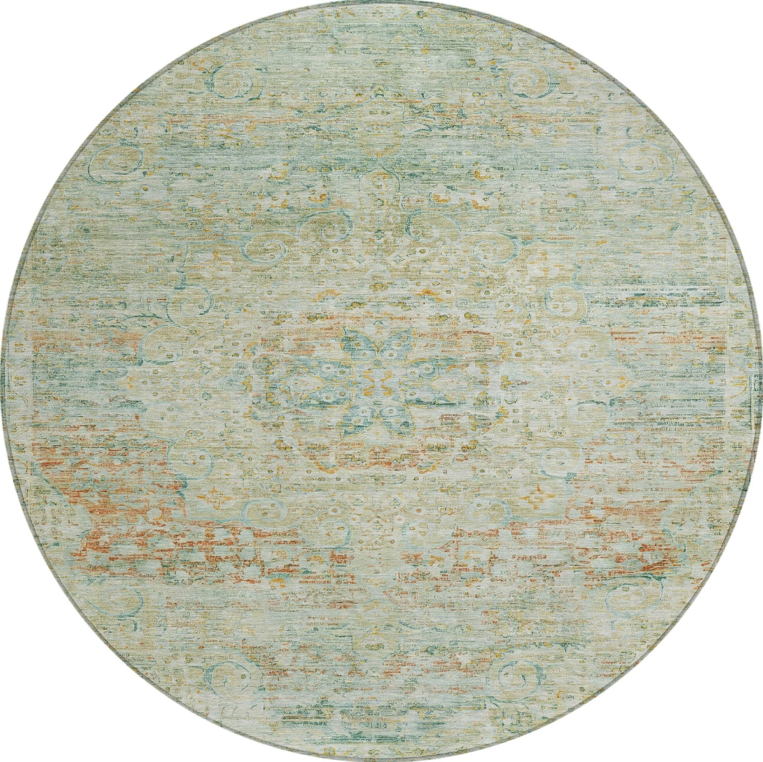 This traditional rug boasts a vintage distressed border framing a central medallion, offering a classic design with timeless elegance. The medallion's intricate details and the weathered border enhance any room with a touch of historical sophistication. UV stabilized for durability, this rug is suited for both indoor and outdoor use, maintaining its stylish look over time. The ultra-thin construction ensures it integrates easily under furniture, and it's machine-washable for convenient maintenance. Family and pet-friendly, this rug combines traditional style with modern practicality.