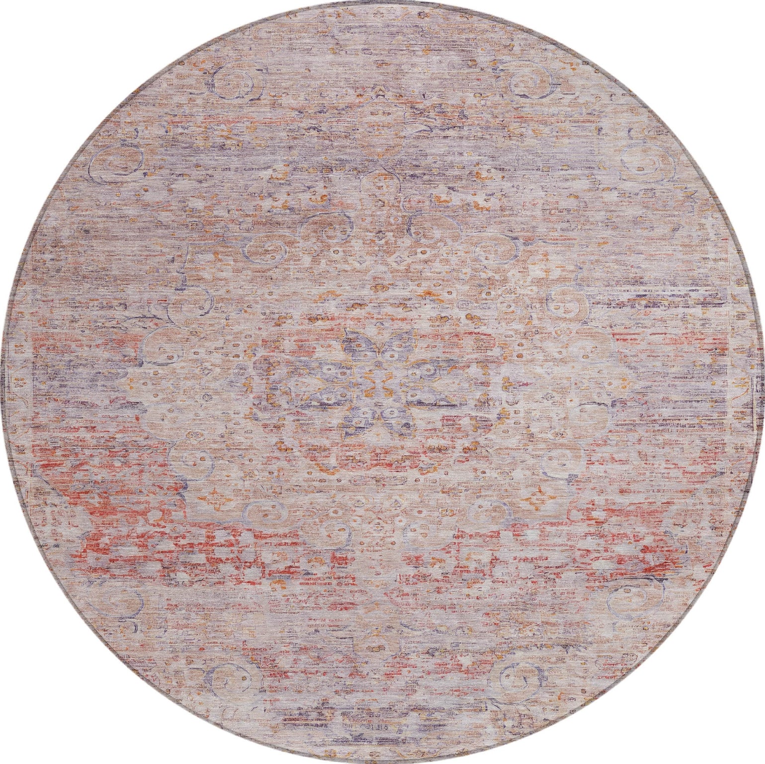 This traditional rug boasts a vintage distressed border framing a central medallion, offering a classic design with timeless elegance. The medallion's intricate details and the weathered border enhance any room with a touch of historical sophistication. UV stabilized for durability, this rug is suited for both indoor and outdoor use, maintaining its stylish look over time. The ultra-thin construction ensures it integrates easily under furniture, and it's machine-washable for convenient maintenance. Family and pet-friendly, this rug combines traditional style with modern practicality.