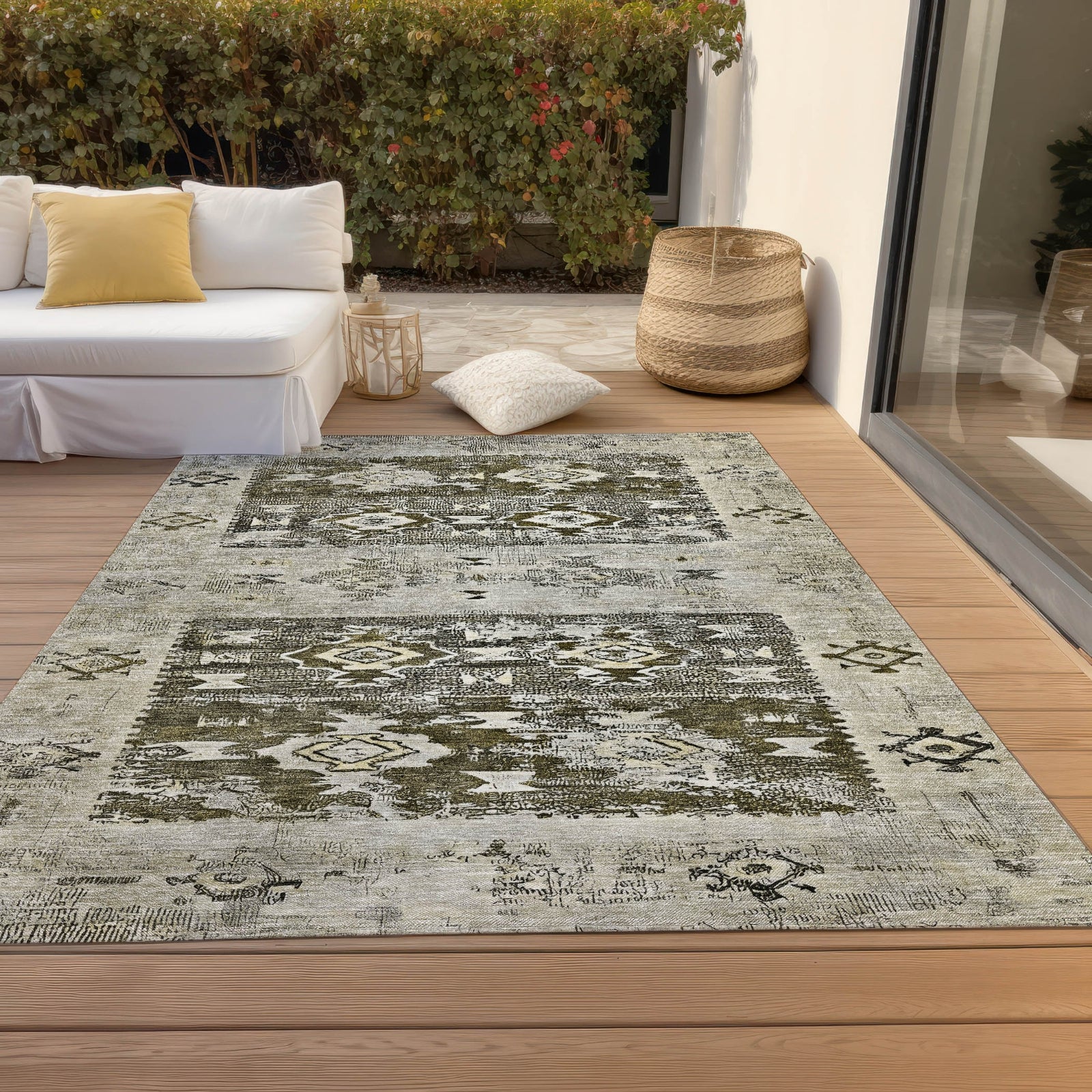 This transitional rug features two large centered boxes with intricate Aztec motifs, delivering a captivating global pattern that brightens up your decor. The elaborate Aztec designs offer a refined and stylish look, perfect for various room styles. UV stabilized for durability, this rug is ideal for both indoor and outdoor use, keeping its bold appearance over time. The ultra-thin profile fits smoothly under furniture, and it's machine-washable for convenient maintenance. Family and pet-friendly, this rug merges exceptional style with practical functionality.