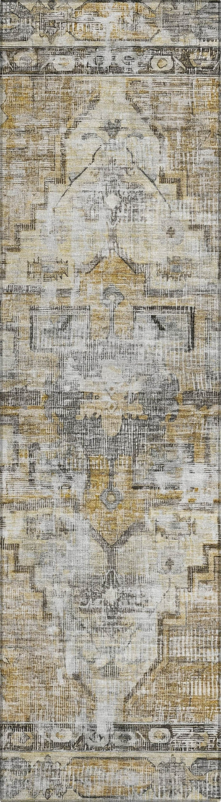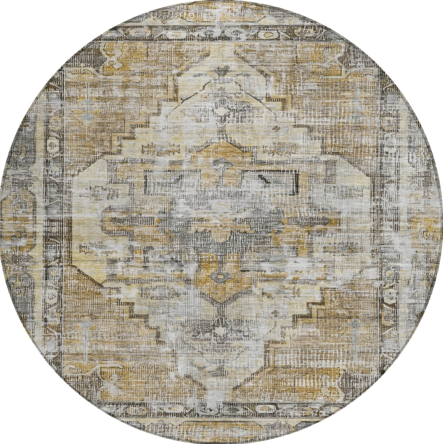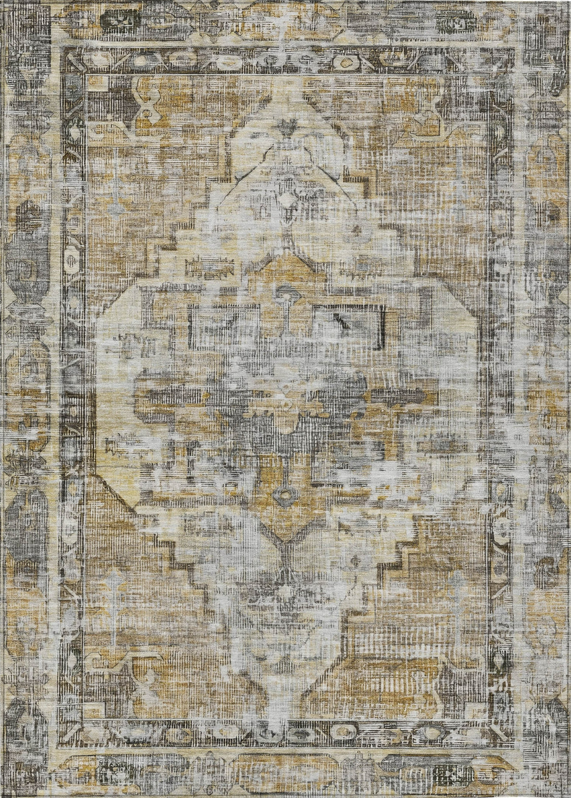 A finely detailed center medallion anchors this rug's design, while a bold border and overall distress effects add a sense of history. The faded appearance offers a relaxed, timeworn aesthetic that brings depth to your room. Its traditional style and global pattern make it a striking yet timeless addition to your home. This UV-stabilized rug is designed for both indoor and outdoor use, with an ultra-thin construction that makes it easy to manage and maintain. Machine-washable for convenience, it's also family and pet-friendly, ensuring it holds up to daily traffic and activity. Bring effortless style and durability to your space with this versatile rug.