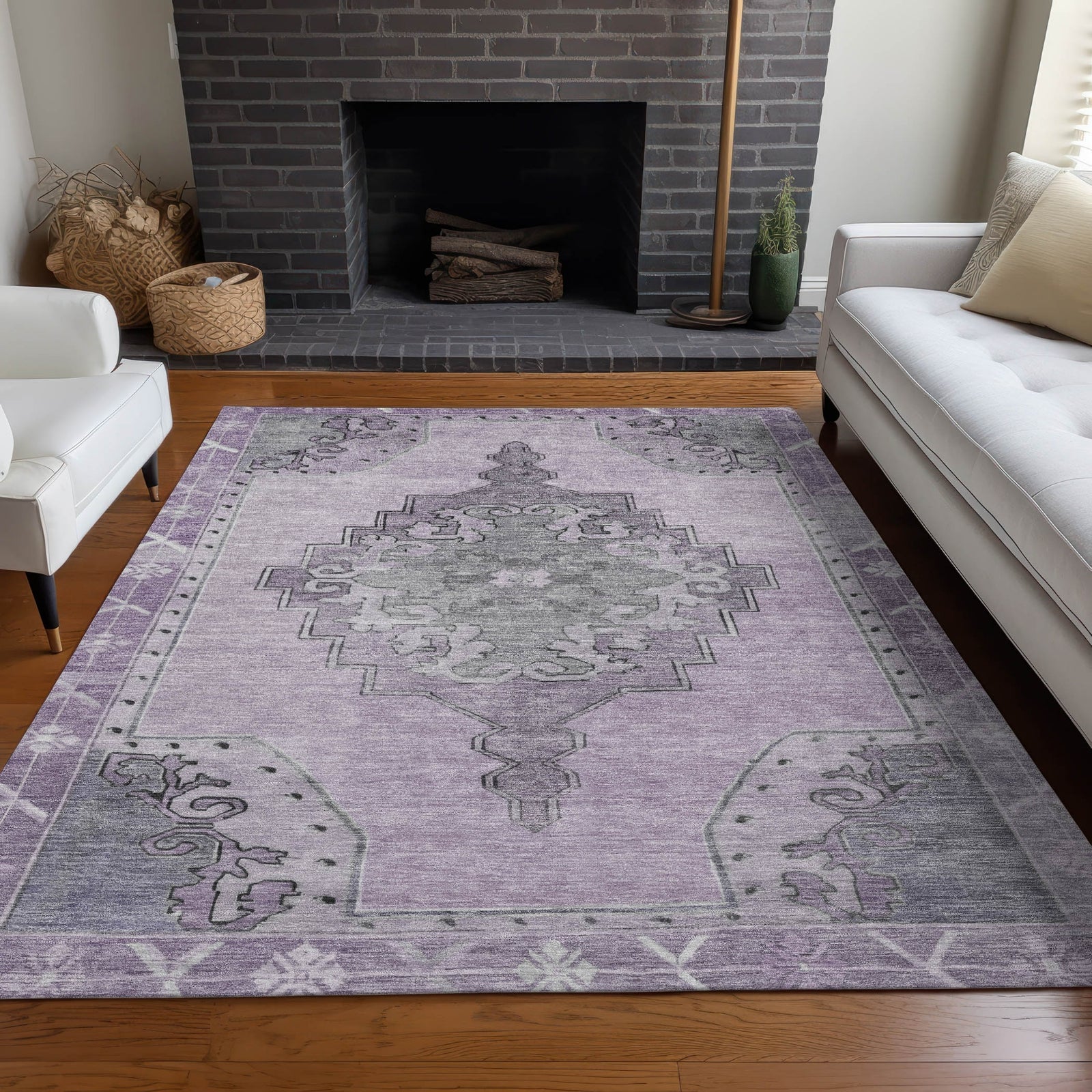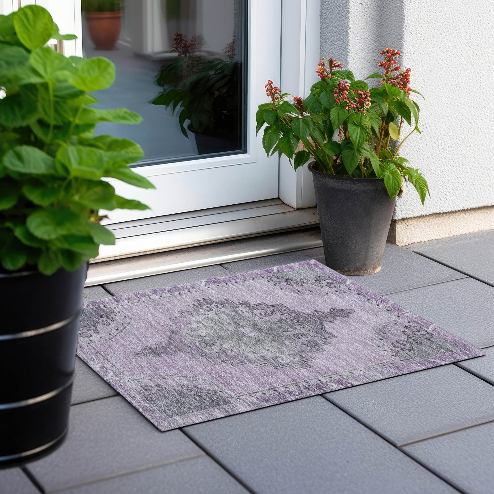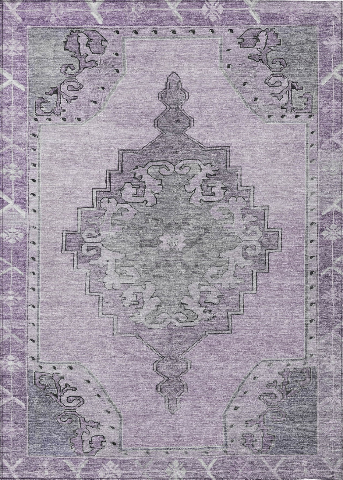 This rug features a stunning open field medallion, framed with an intricate border that enhances its overall design. The medallion adds a bold focal point, while the detailed border provides structure and sophistication. Its traditional style and global pattern blend seamlessly, making it an elegant yet culturally rich choice for any room. This UV-stabilized rug is designed for both indoor and outdoor use, with an ultra-thin construction that makes it easy to manage and maintain. Machine-washable for convenience, it's also family and pet-friendly, ensuring it holds up to daily traffic and activity. Bring effortless style and durability to your space with this versatile rug.