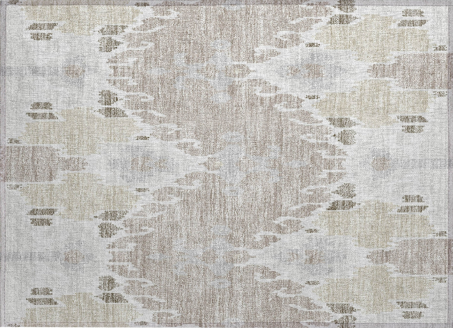 Indulge in the modern sophistication of our rug, adorned with an Ikat-inspired pattern that seamlessly blends traditional and contemporary styles. This transitional design combines the beauty of Ikat with a modern twist, adding an artistic touch to your home. It's UV stabilized for varied use, ultra-thin for a sleek profile, machine-washable for easy care, and family and pet-friendly, making it an ideal addition to any stylish home.