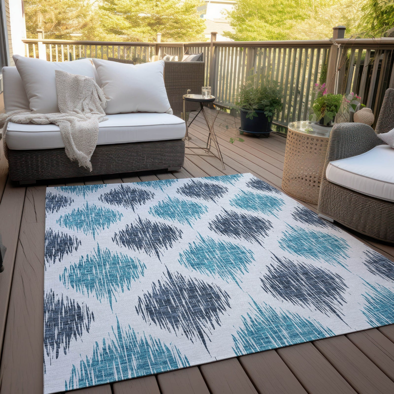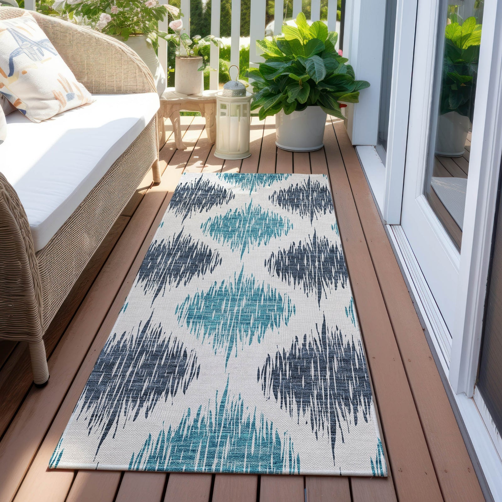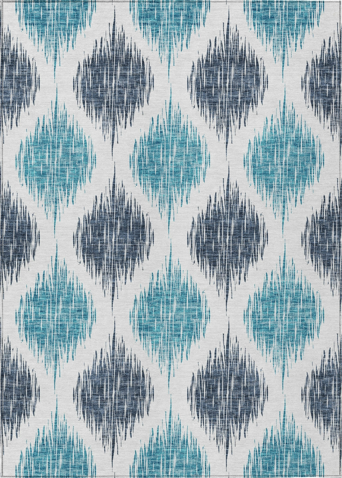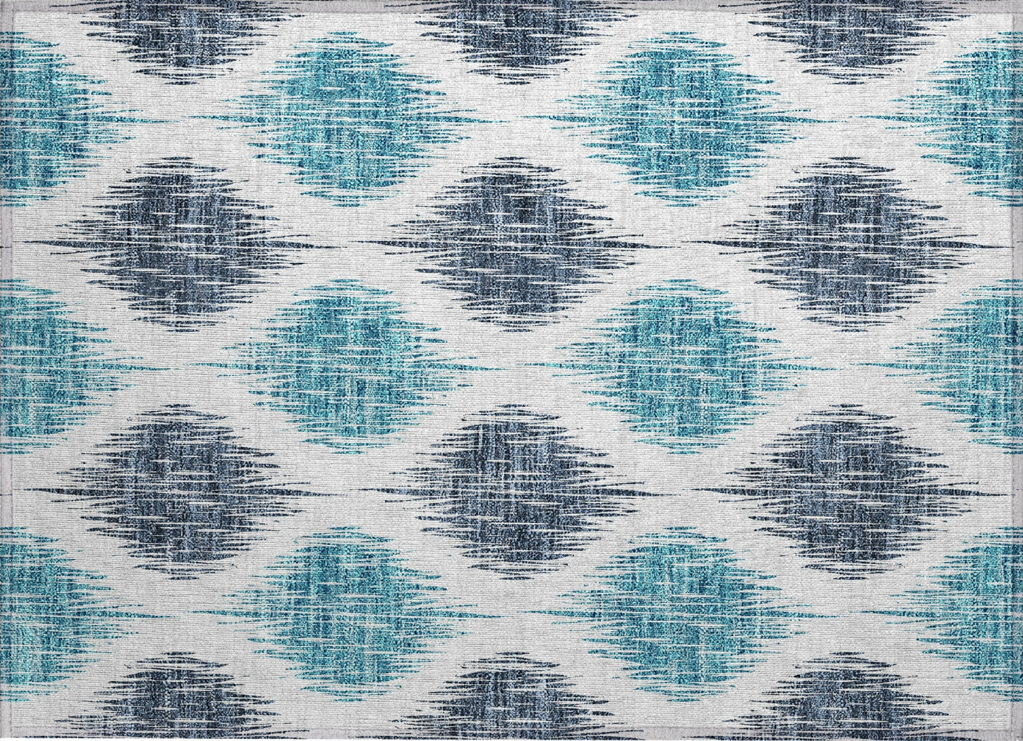 Witness the fusion of traditional and modern in our area rug, highlighted by a blurred ikat pattern that results in a stunning lattice effect. This transitional piece reinvents the classic ikat style. Built for endurance with UV stabilization, ultra-thin for various placements, and machine-washable, this rug is a practical and stylish addition to homes with pets and children.